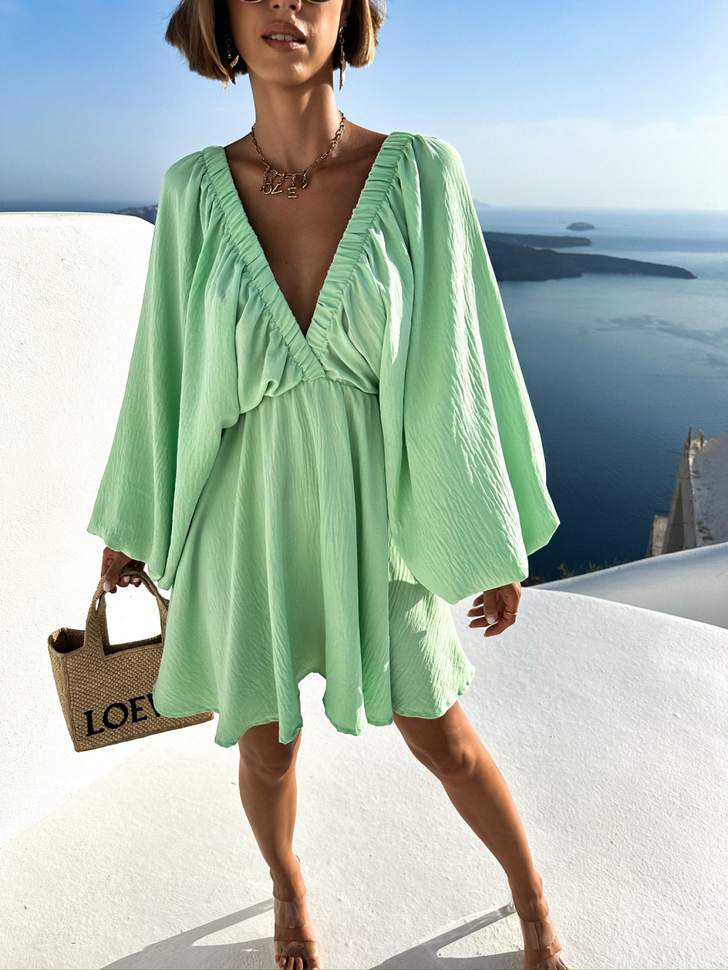 Svetlo zelené boho krátke šaty RANGE s výstrihom