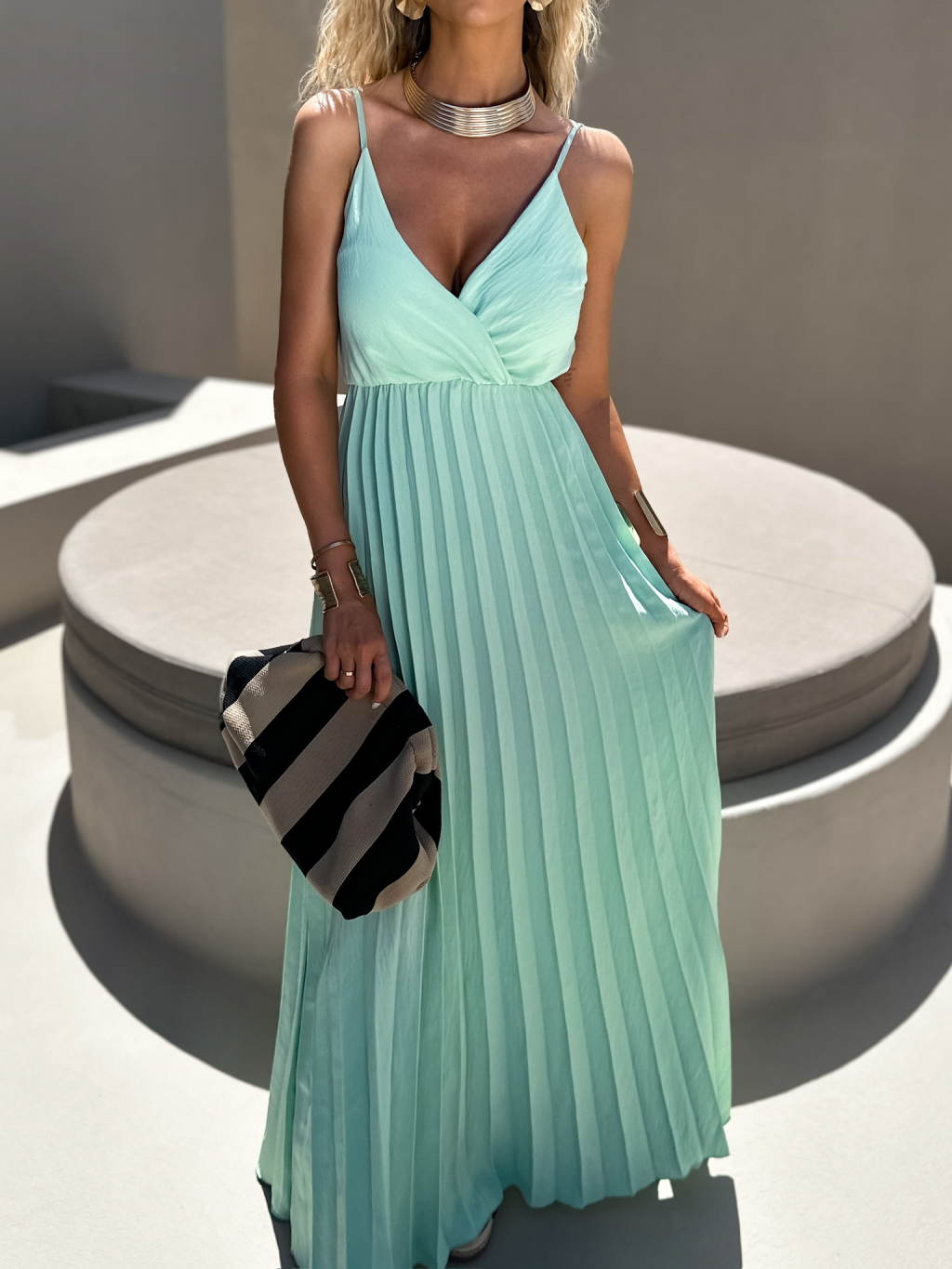 Svetlo zelené plisované dlhé letné šaty SUNLOVE