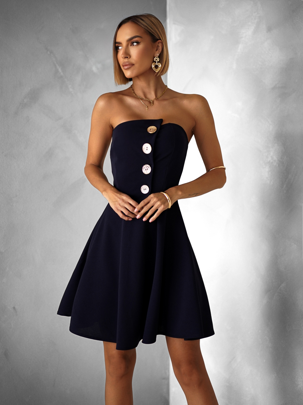 Tmavomodré áčkové krátke šaty TIPERRY