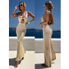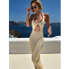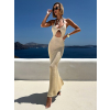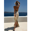 Zlaté letné dlhé plážové šaty HENRYLA s rázporkom