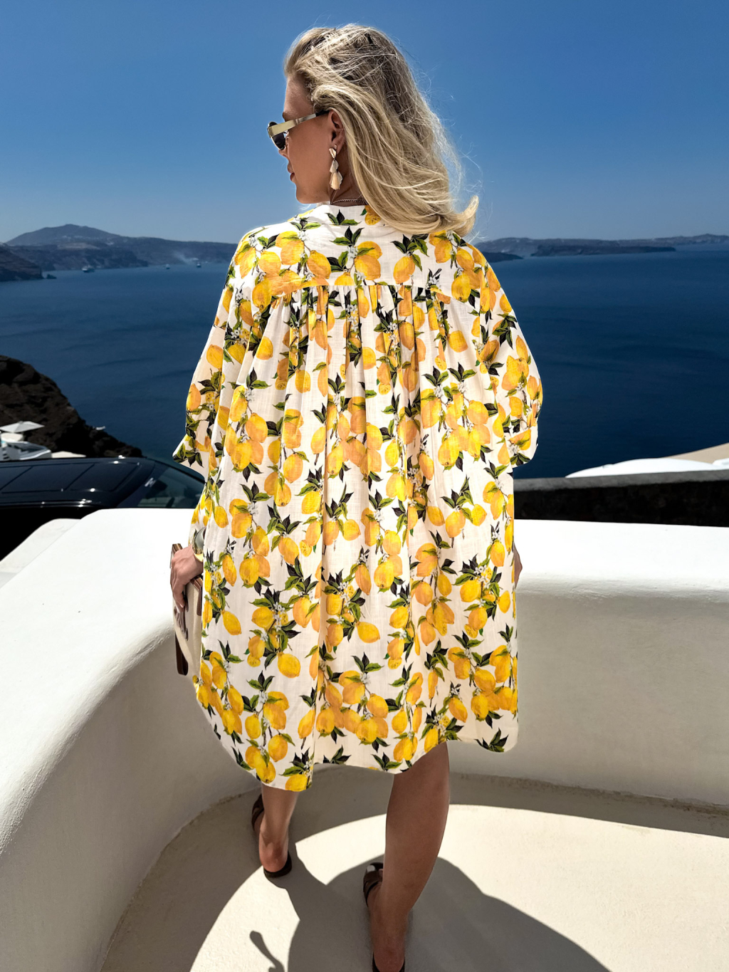 Žlté 100% bavlna letné oversize krátke šaty TUNDRA s citrónmi