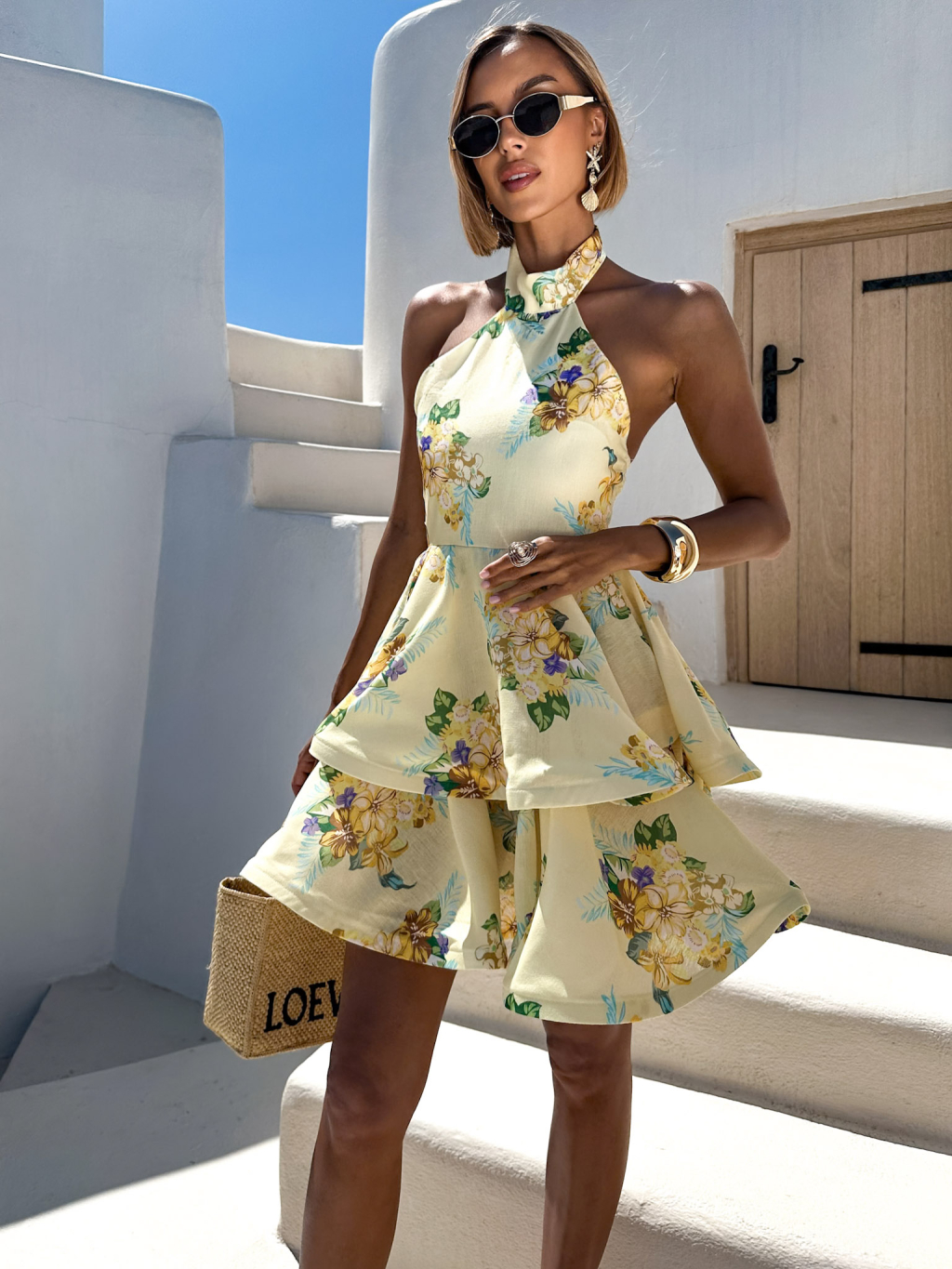Žlté kvetinové krátke šaty FLORENY s volánmi