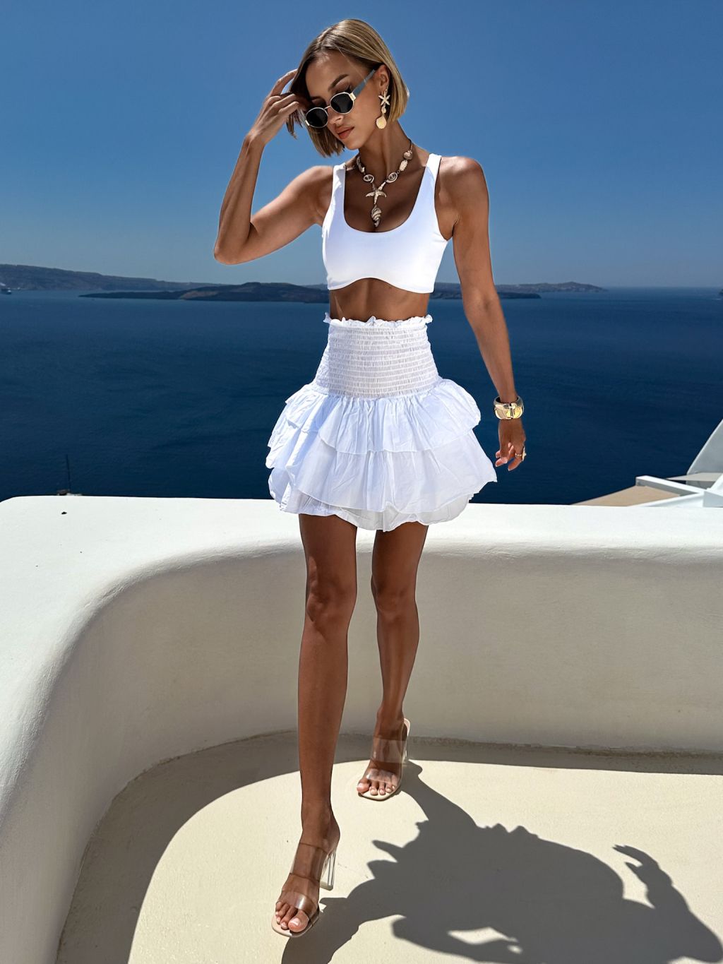 Biela bavlnená letná midi sukňa FARINA s volánmi