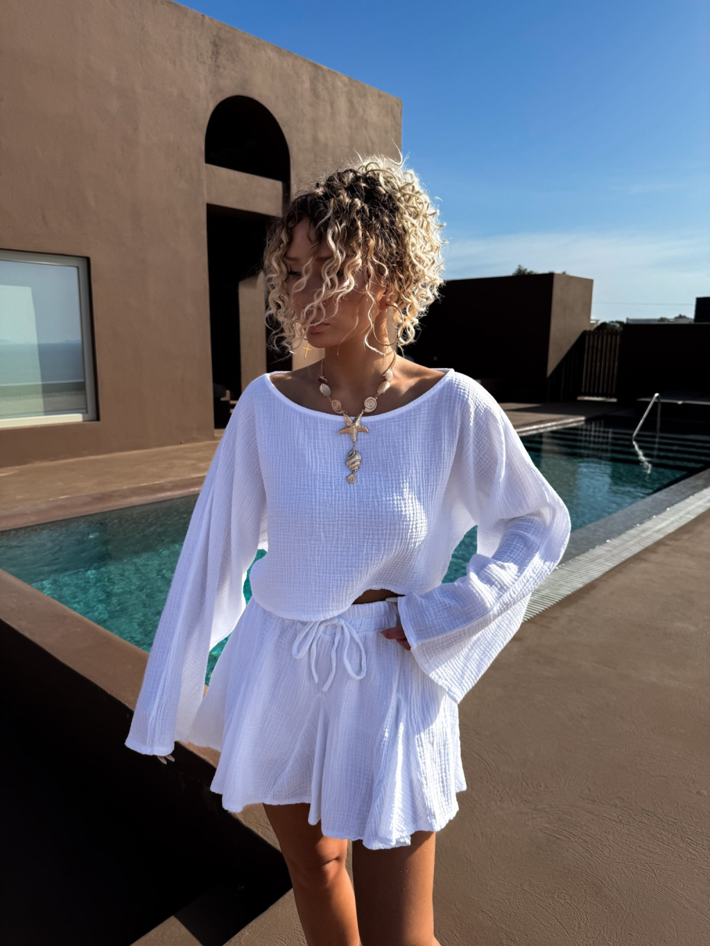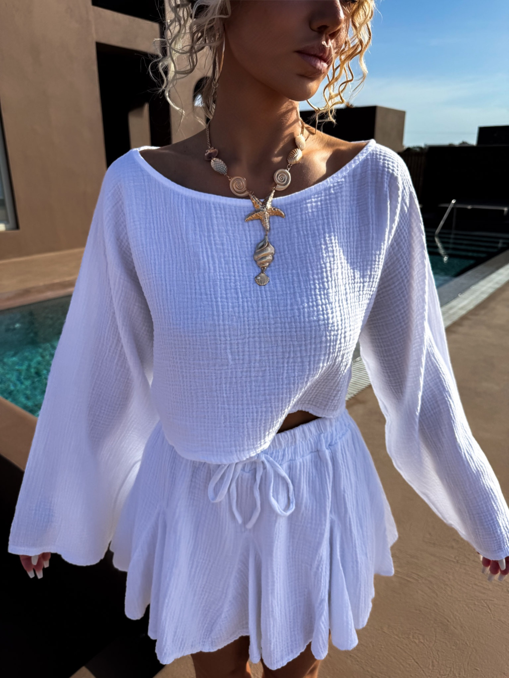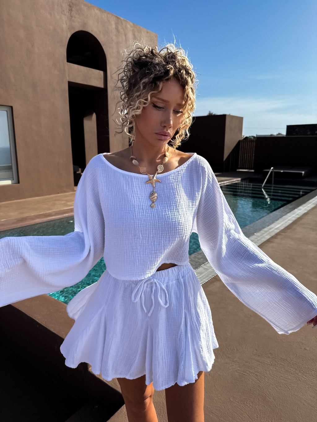 Biela krátka mušelínová sukňa LARLEY s kraťaskami