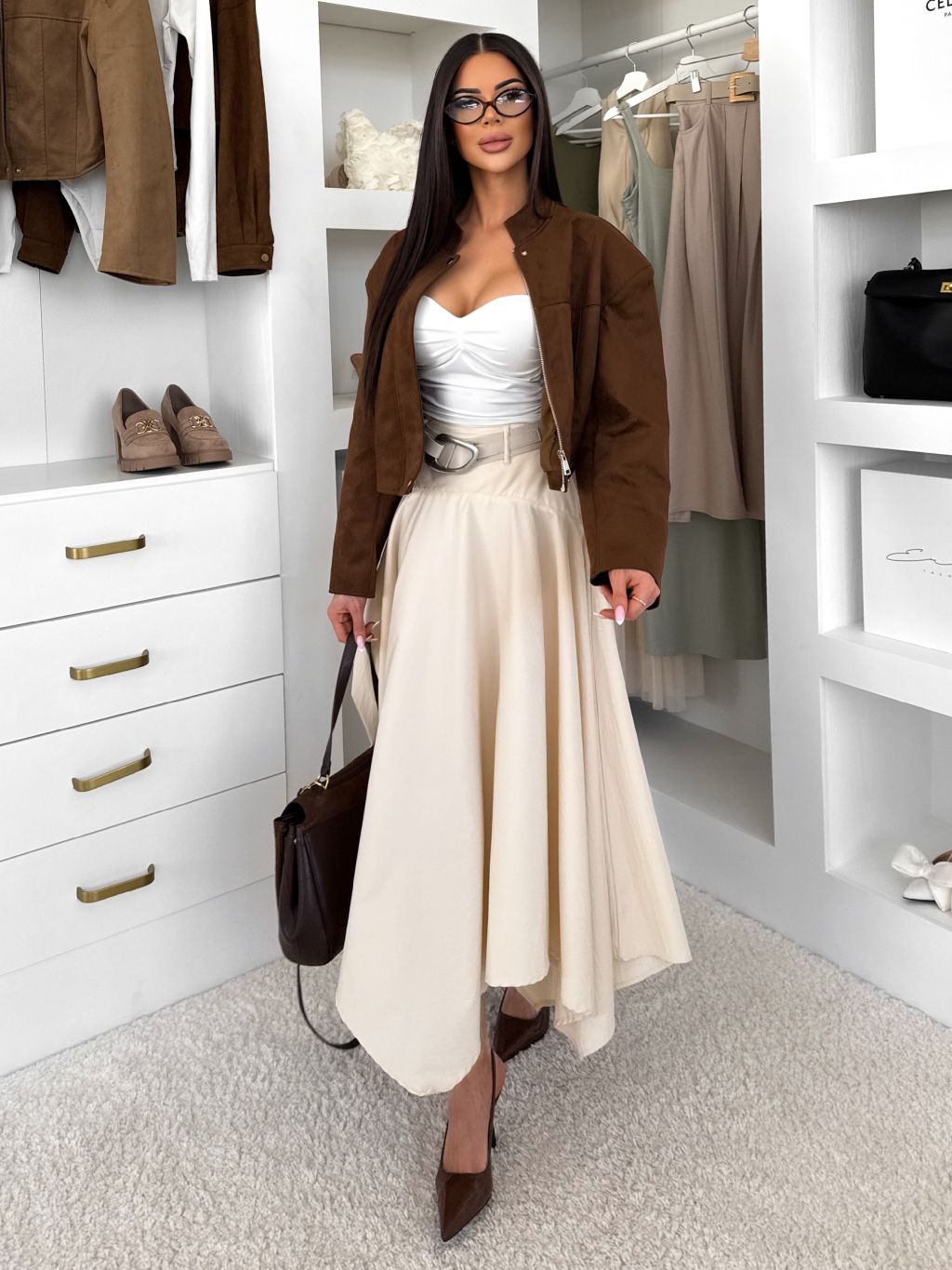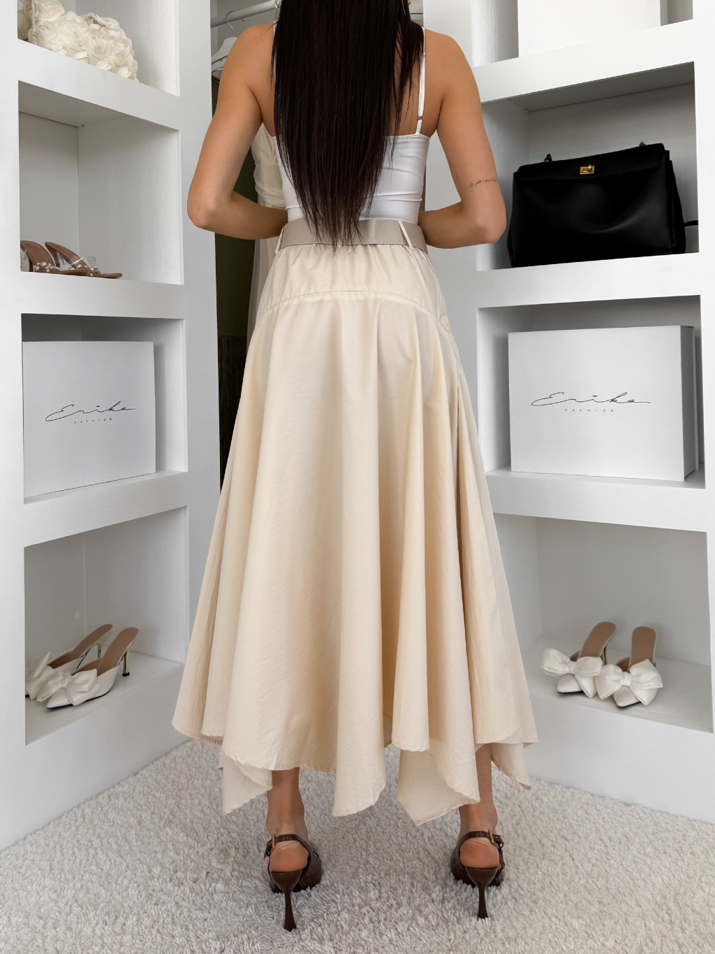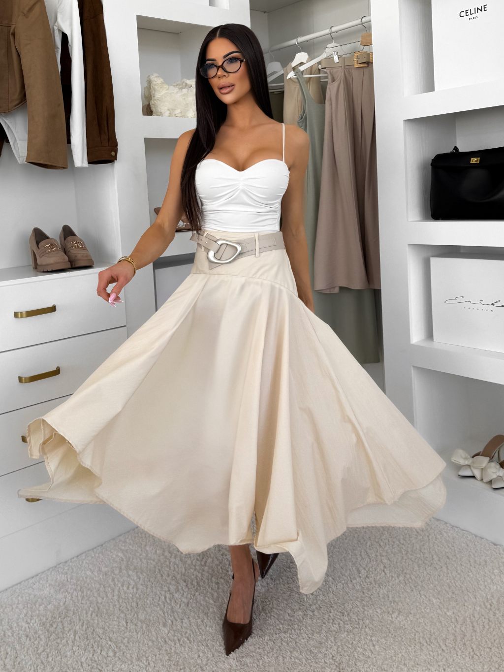 Krémová elegantná dlhá midi sukňa MONTESSA s opaskom