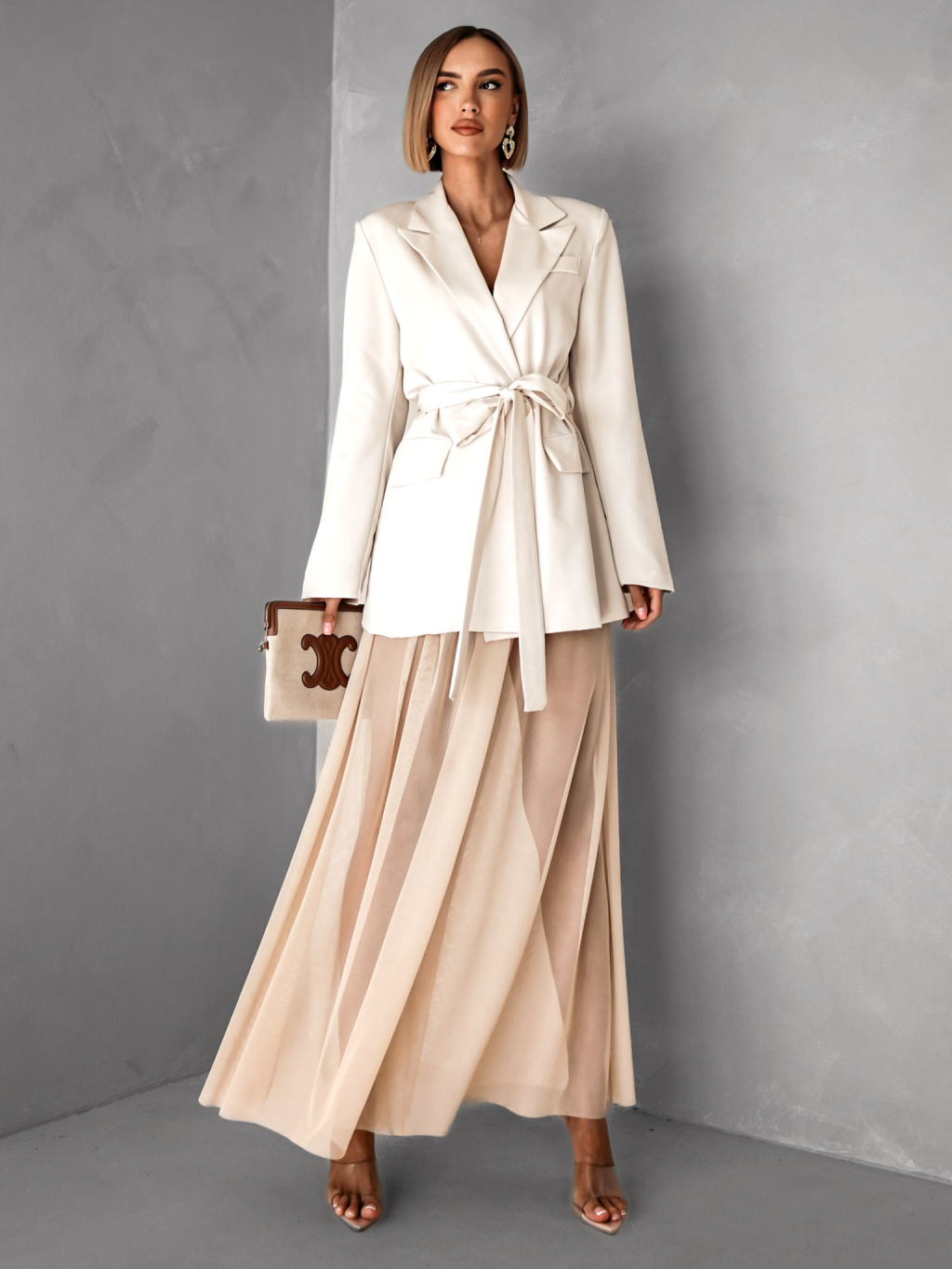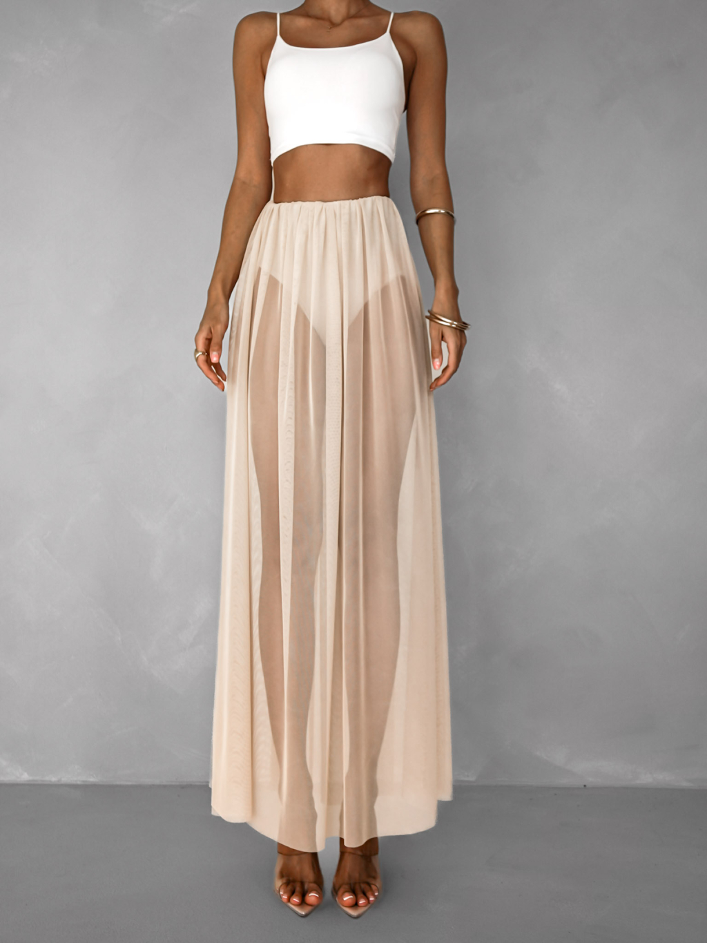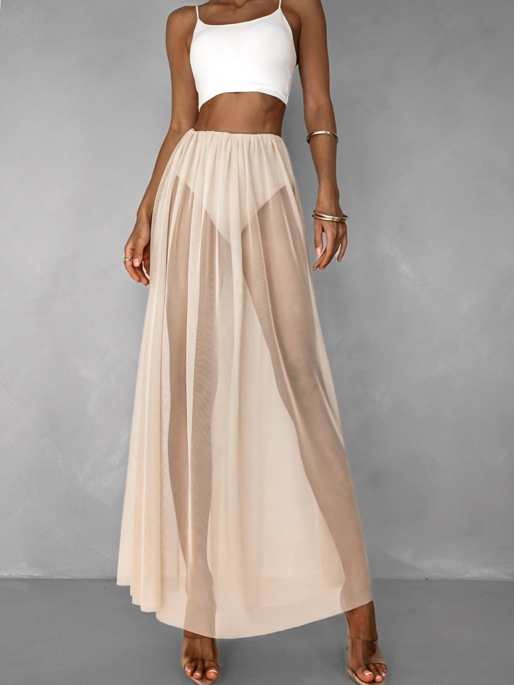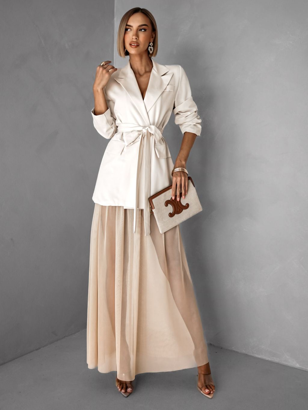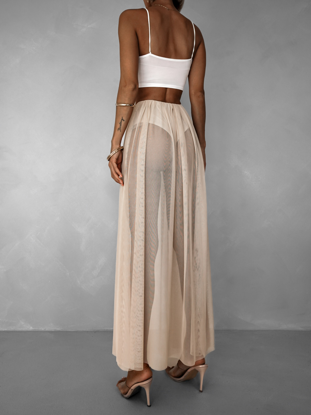 Krémová tylová dlhá sukňa HARRYOL s kraťaskami
