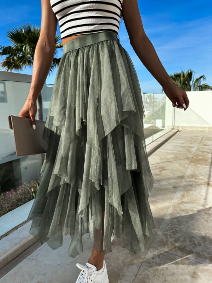 Strieborná flitrovaná dlhá sukňa ESTRELLA