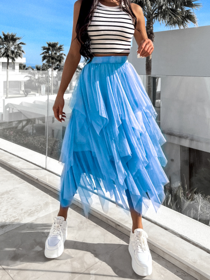Modrá saténová dlhá zavinovacia sukňa DENISSE