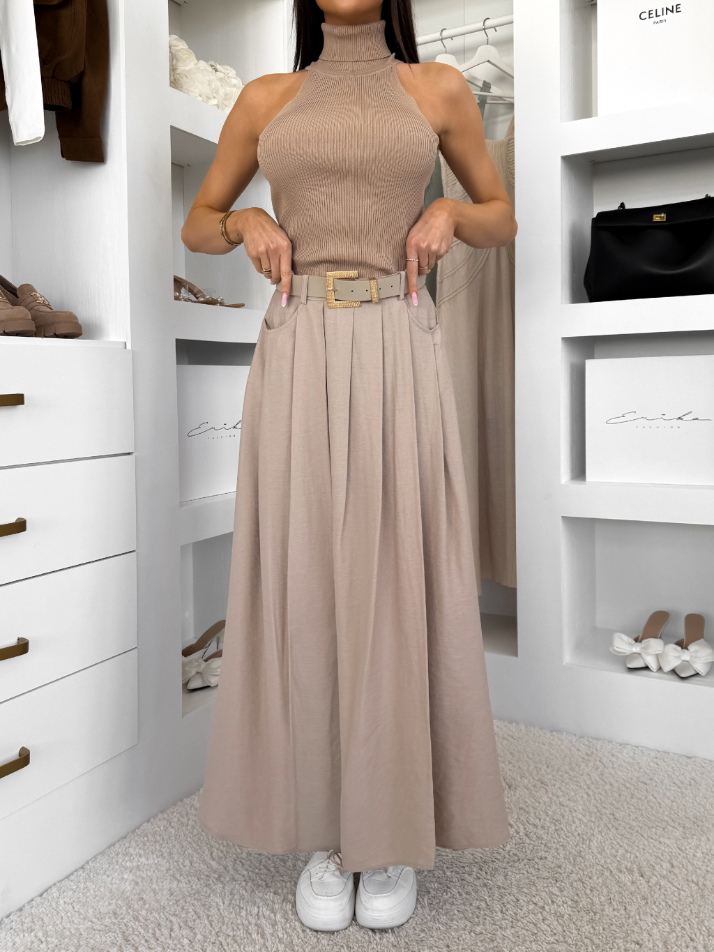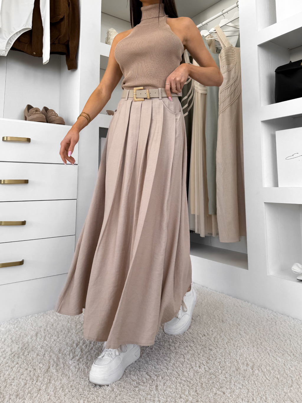 Svetlo hnedá dlhá štýlová sukňa JUVANTE s opaskom