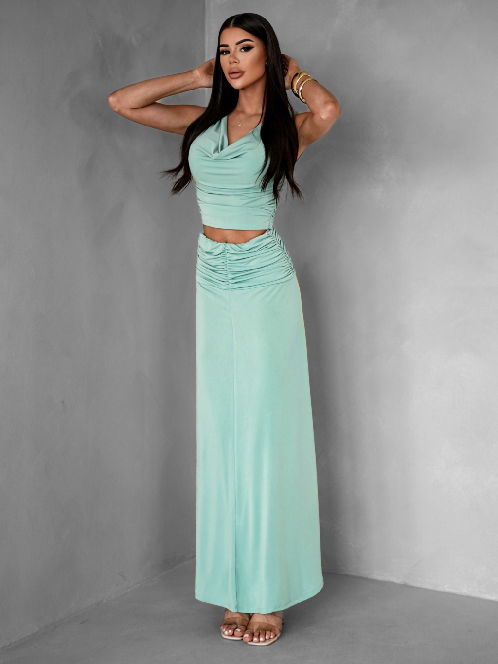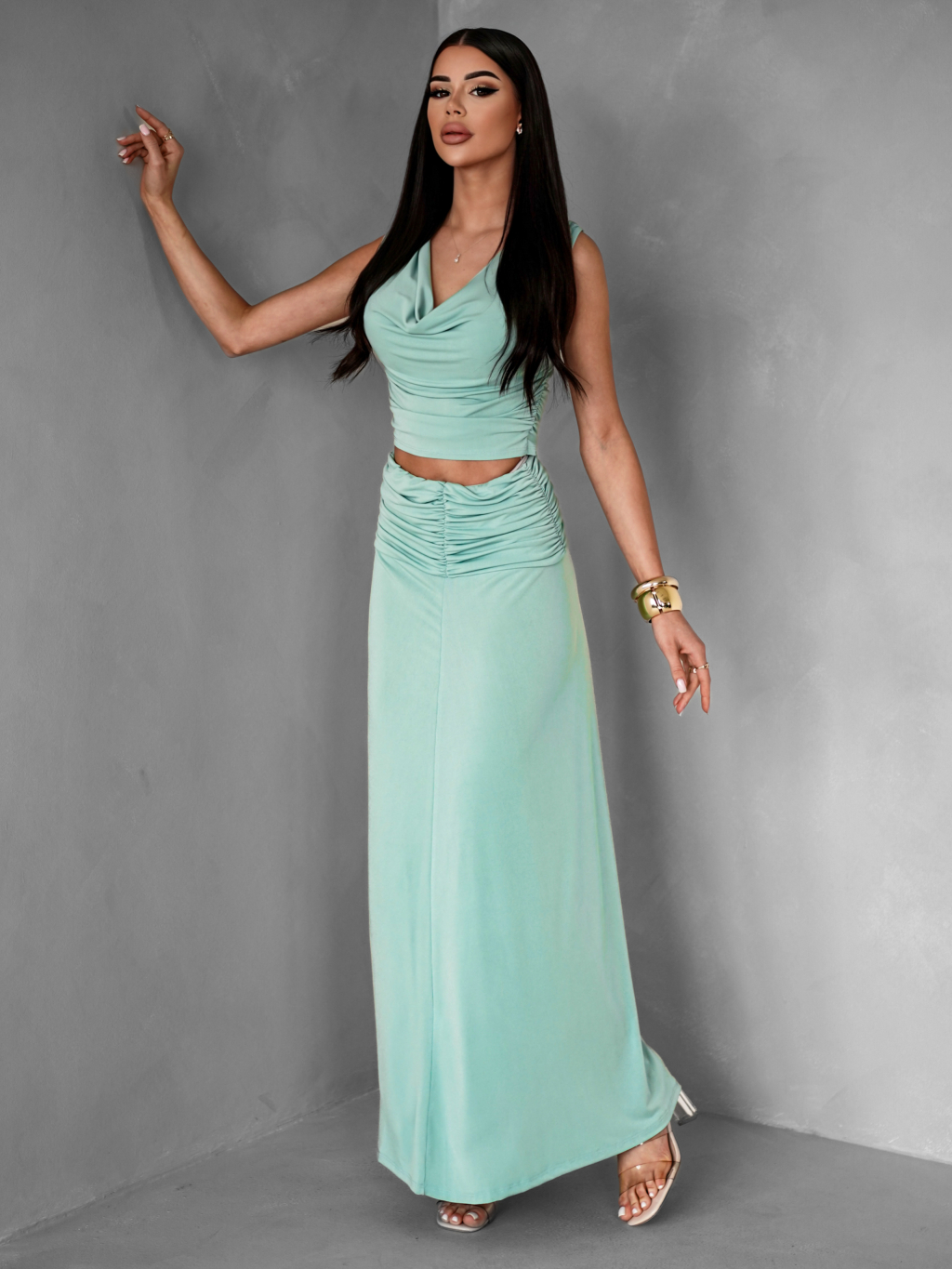 Svetlo zelený elegantný komplet BALERINE so sukňou
