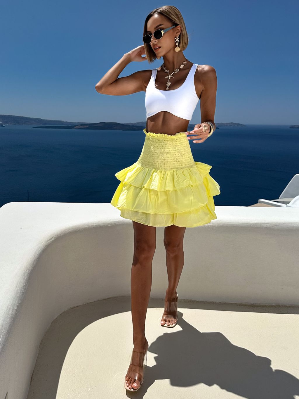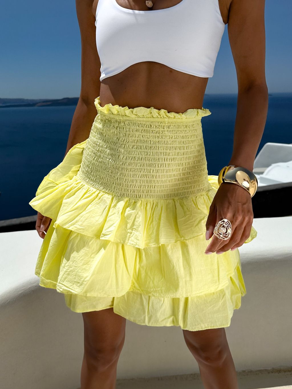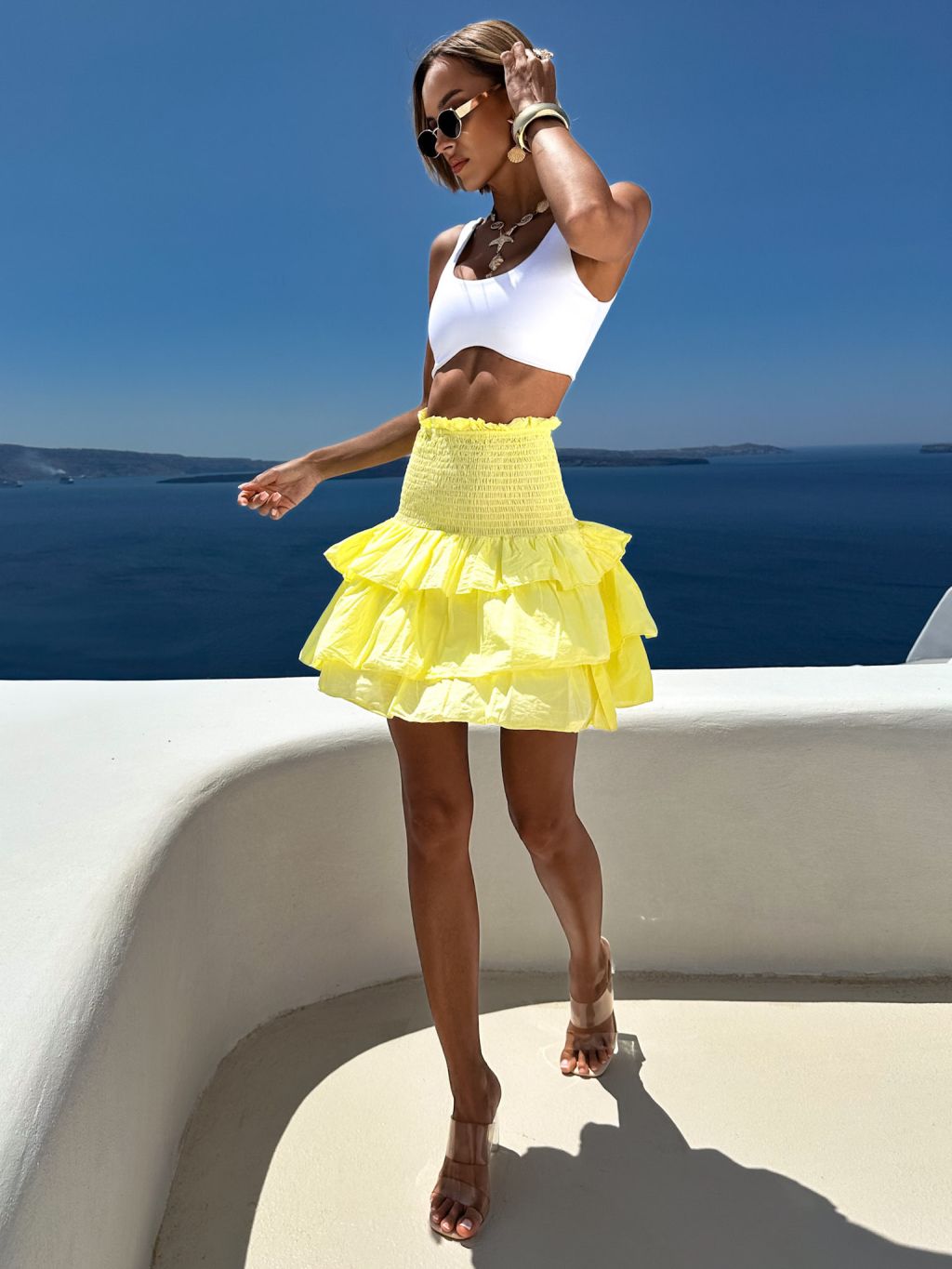 Žltá bavlnená letná midi sukňa FARINA s volánmi