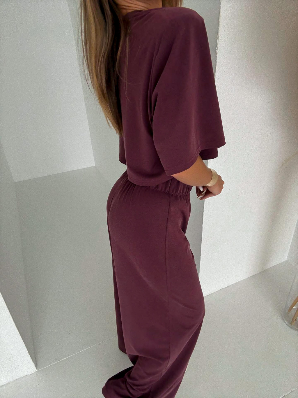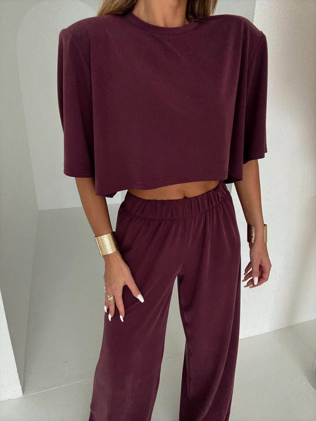 Vínový nohavicový štýlový komplet BELLEZA s vypchávkami