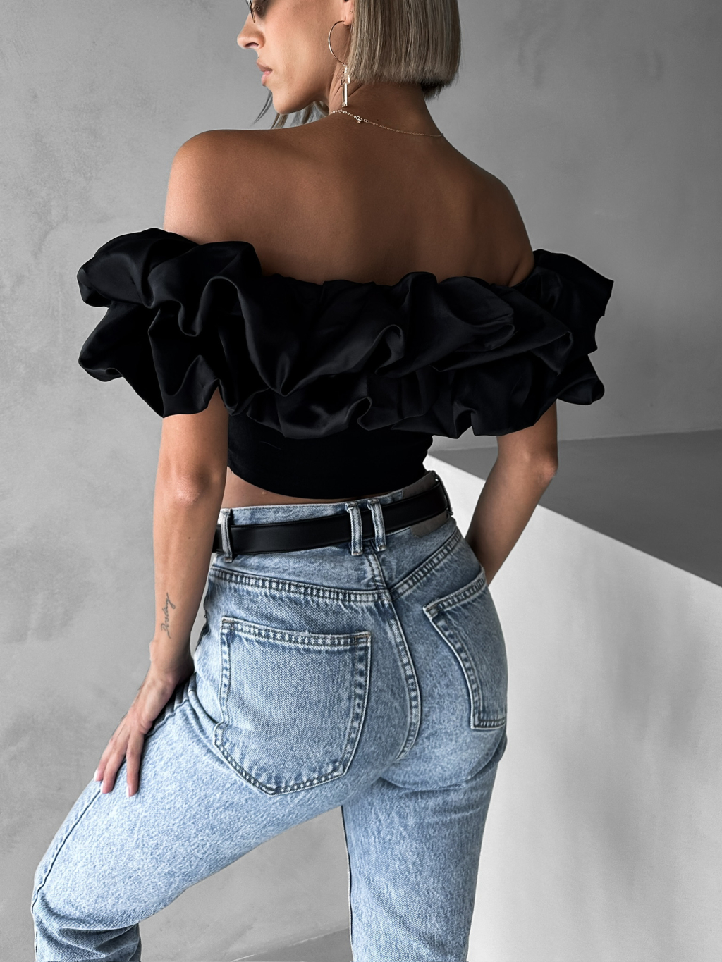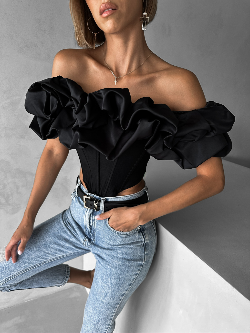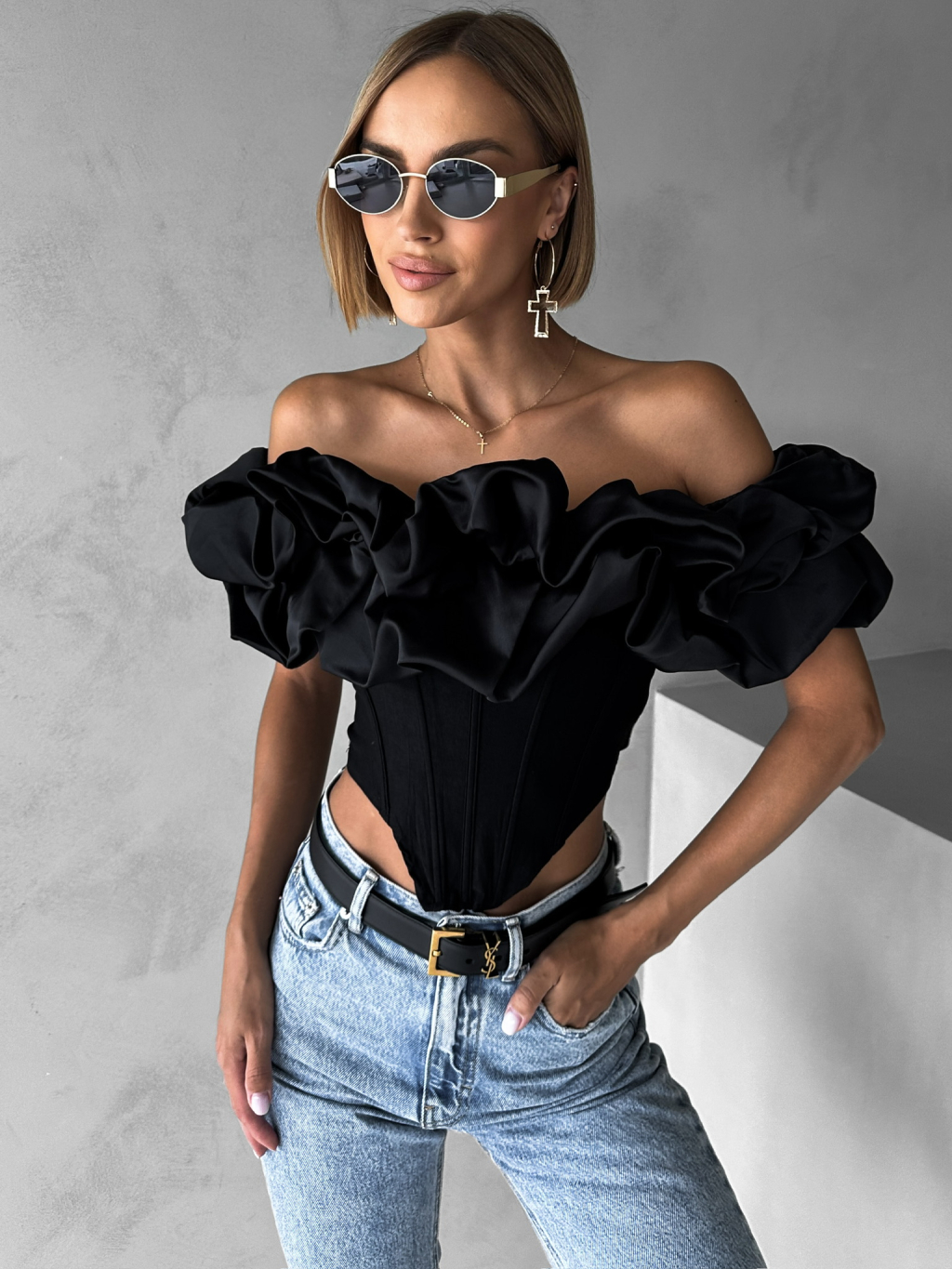 Čierny elegantný korzet KOSTADIN s volánikmi