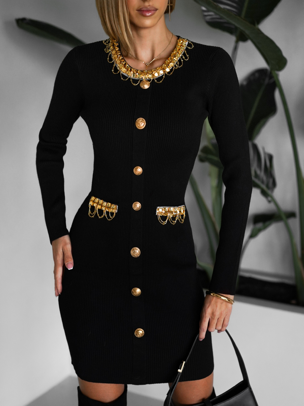 Čiernozlaté džersejové šaty ENRICA