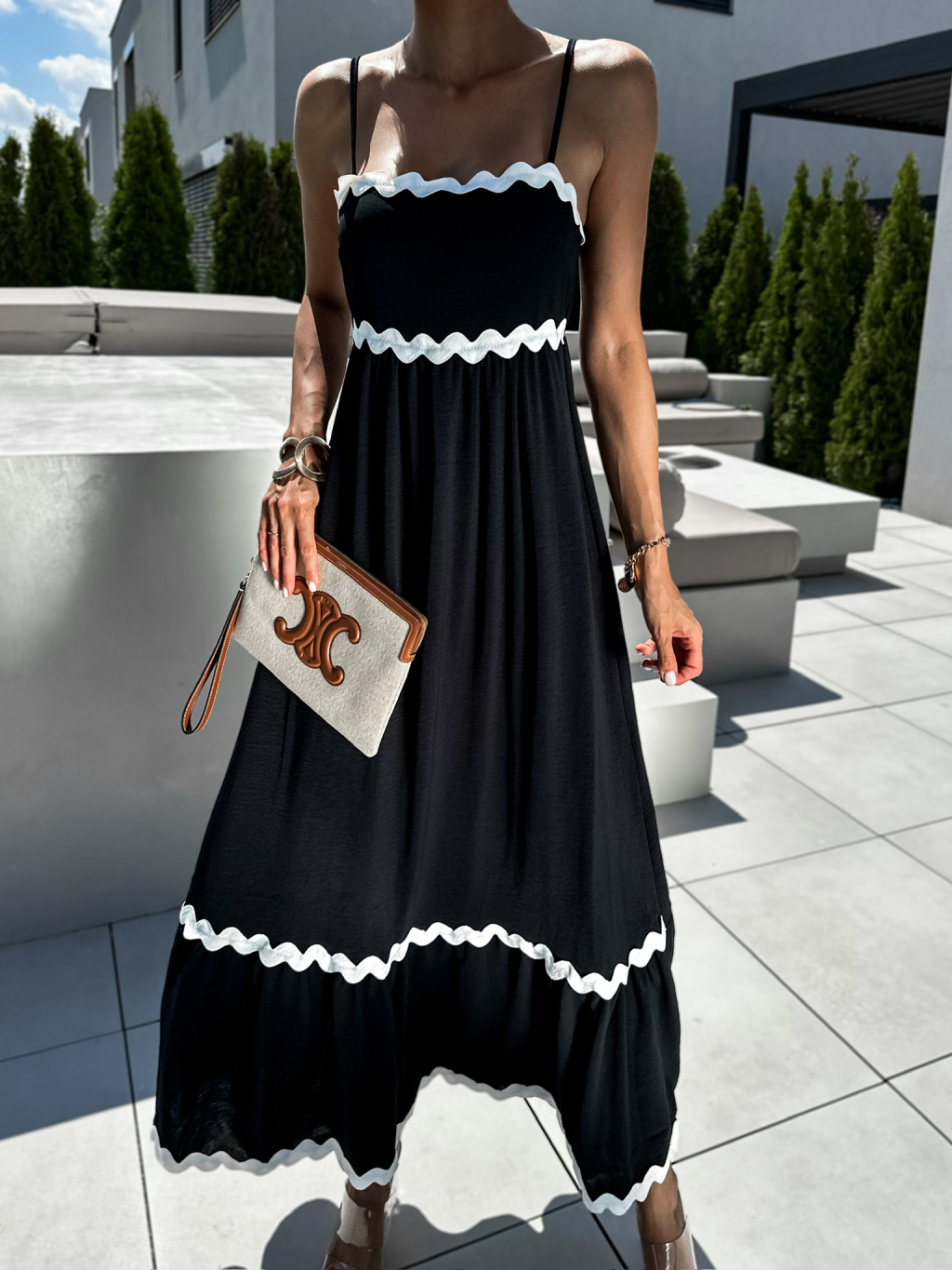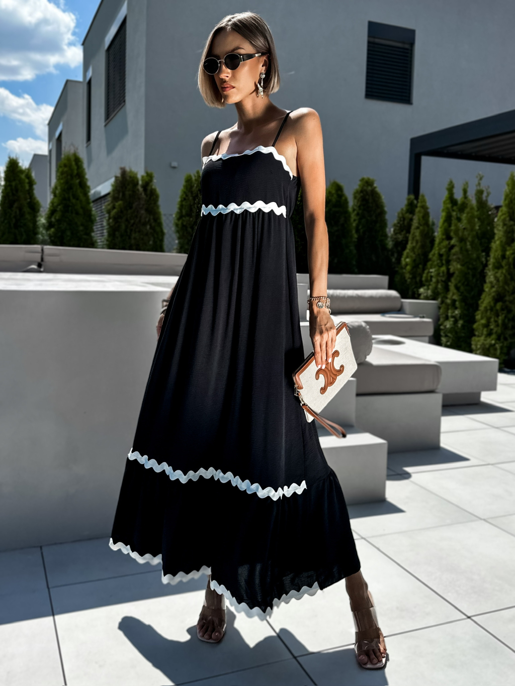 Čierne dlhé maxi šaty BOLLE na ramienka