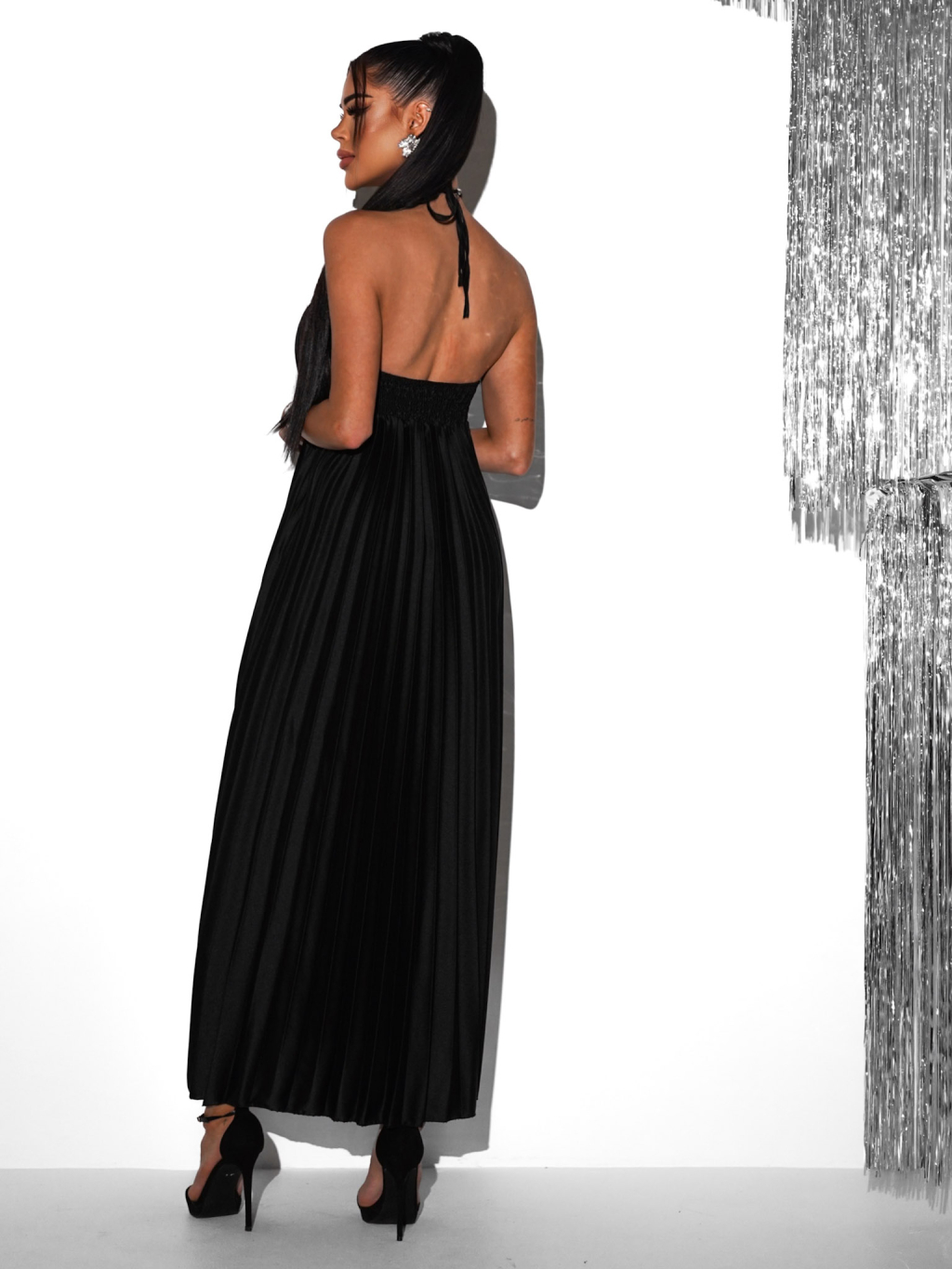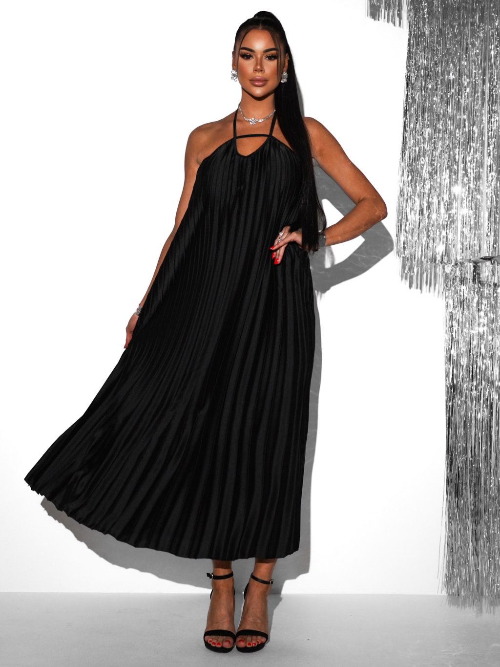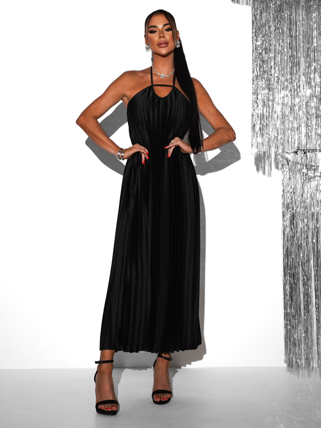 Čierne plisované dlhé elegantné šaty AUSTERE