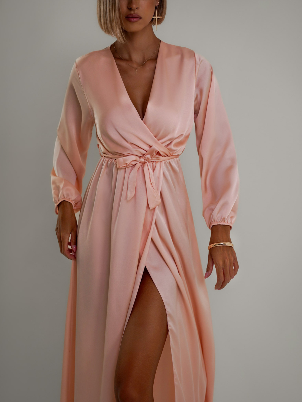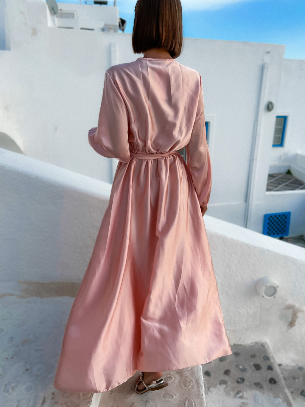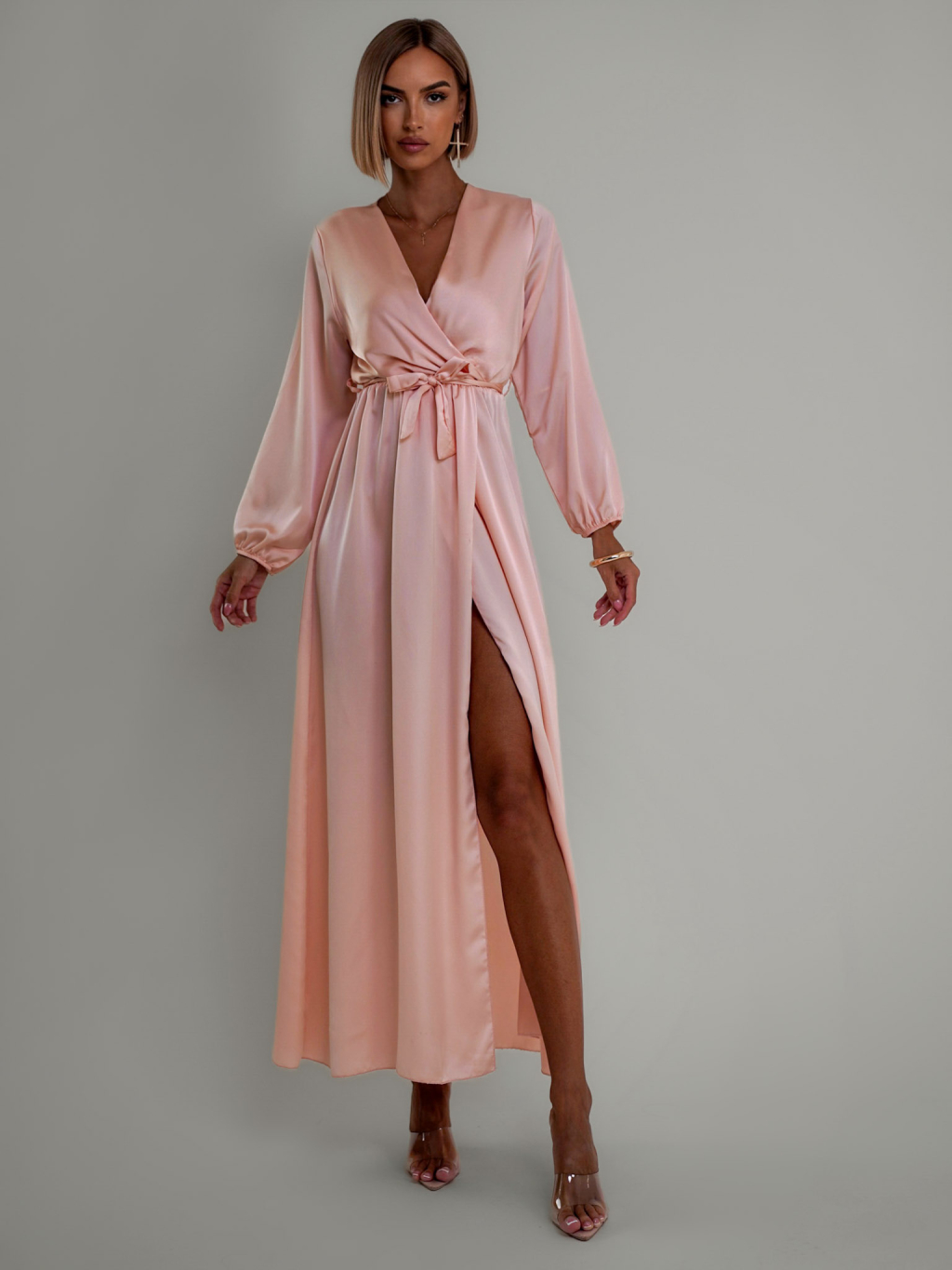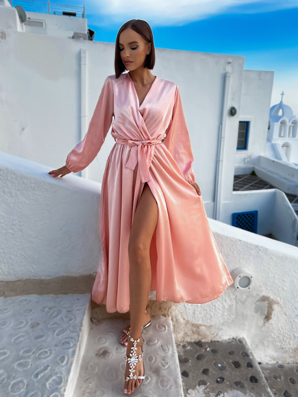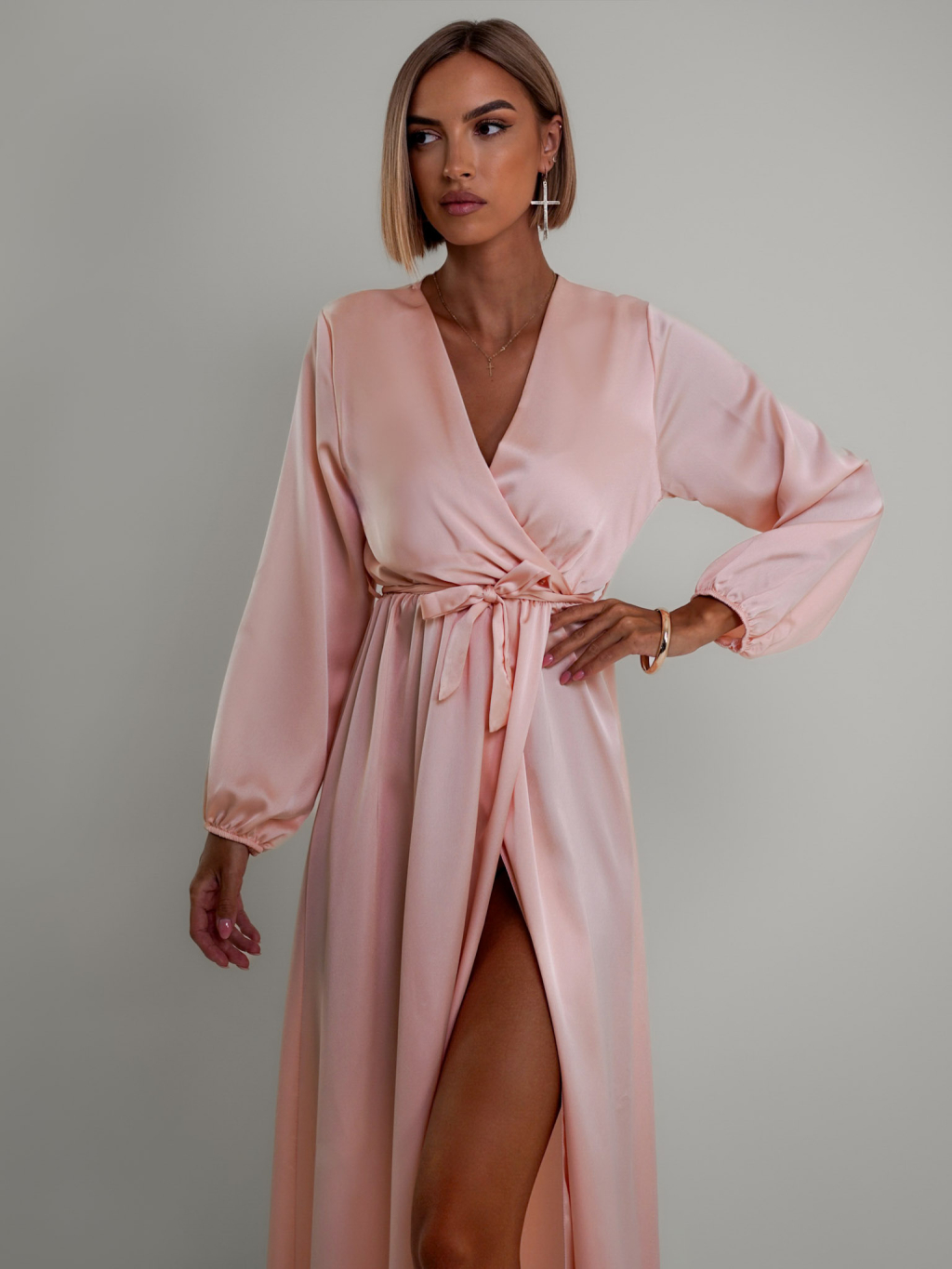 Svetloružové saténové šaty WOMAN s dlhým rukávom