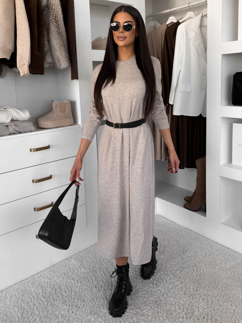 Béžové štýlové maxi dlhé mikinové šaty RAVONI
