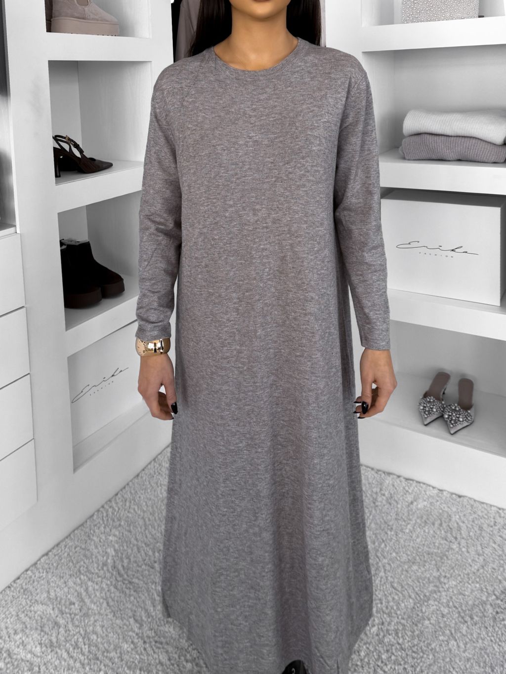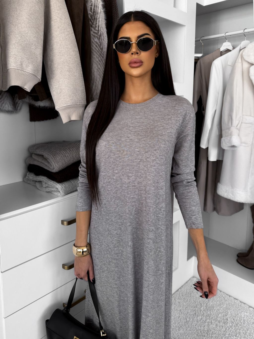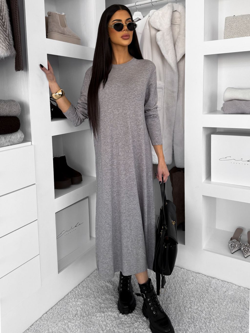 Šedé maxi dlhé šaty RAVONI