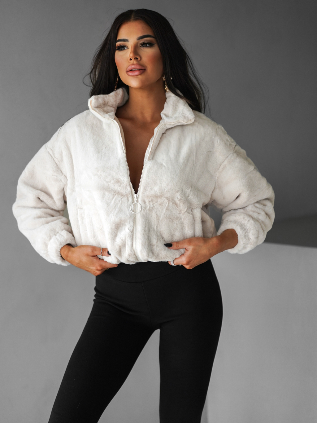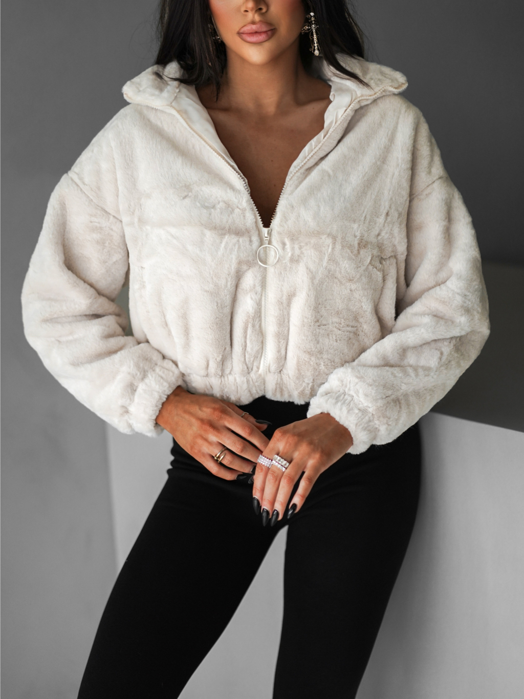 Krémová plyšová mikina AZRIEL