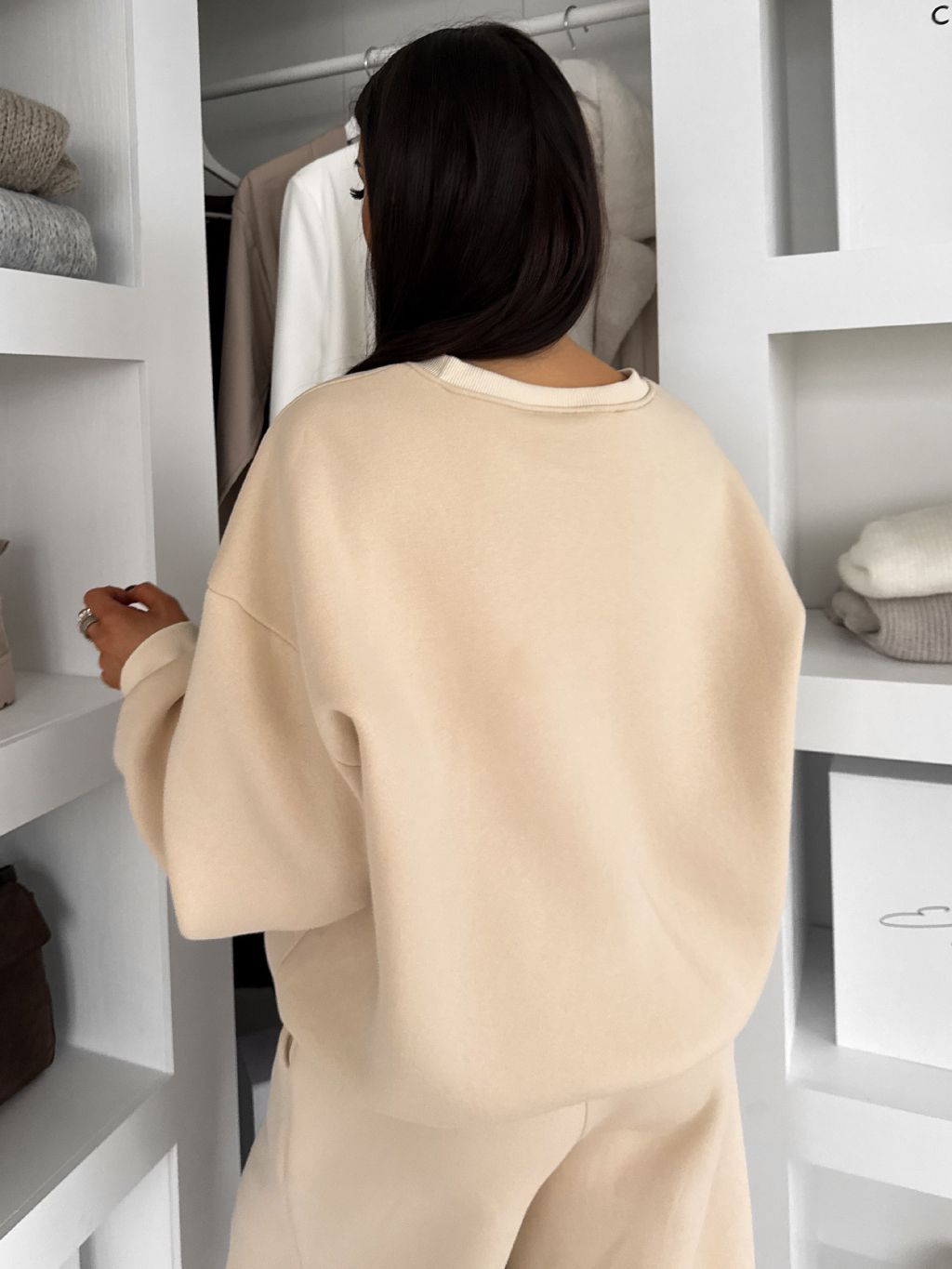 Krémová bavlnená zateplená oversize mikina LOFARI