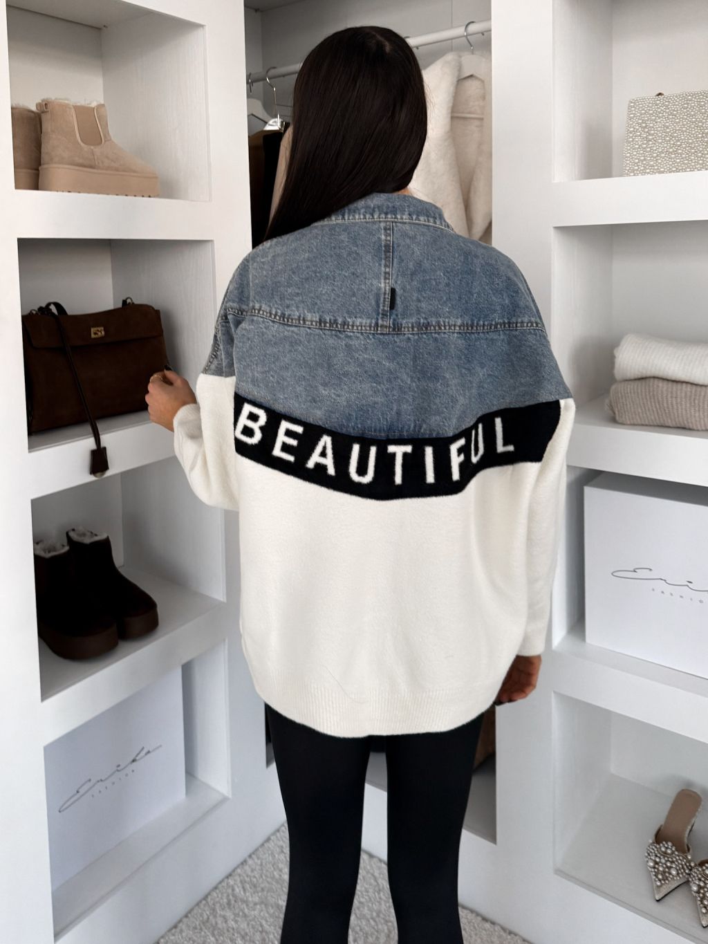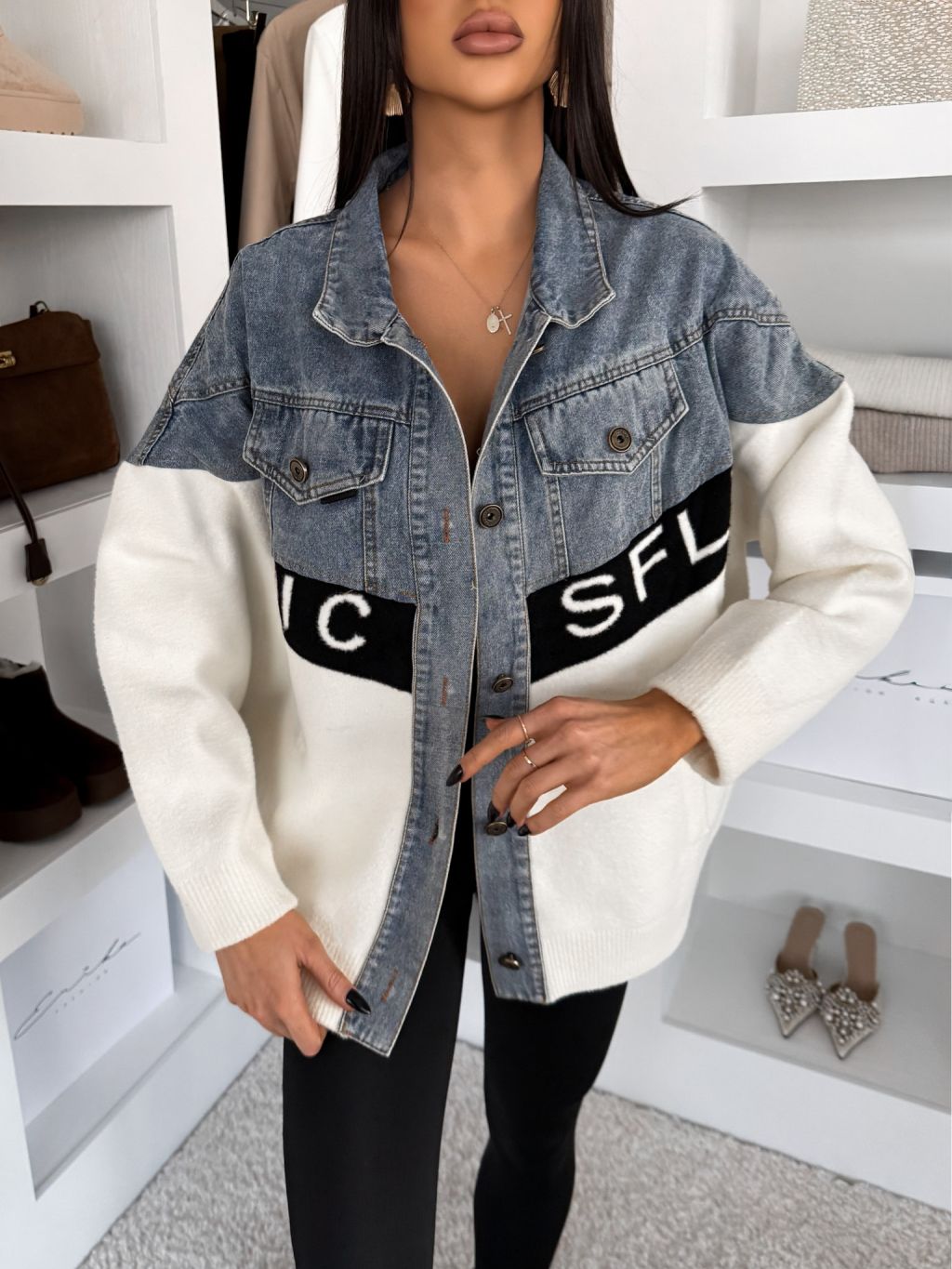 Modrobiela džínsová oversize mikina NALIQUE