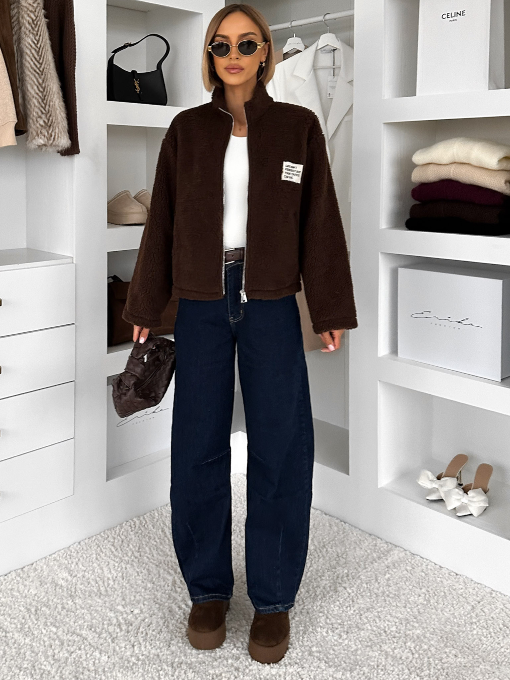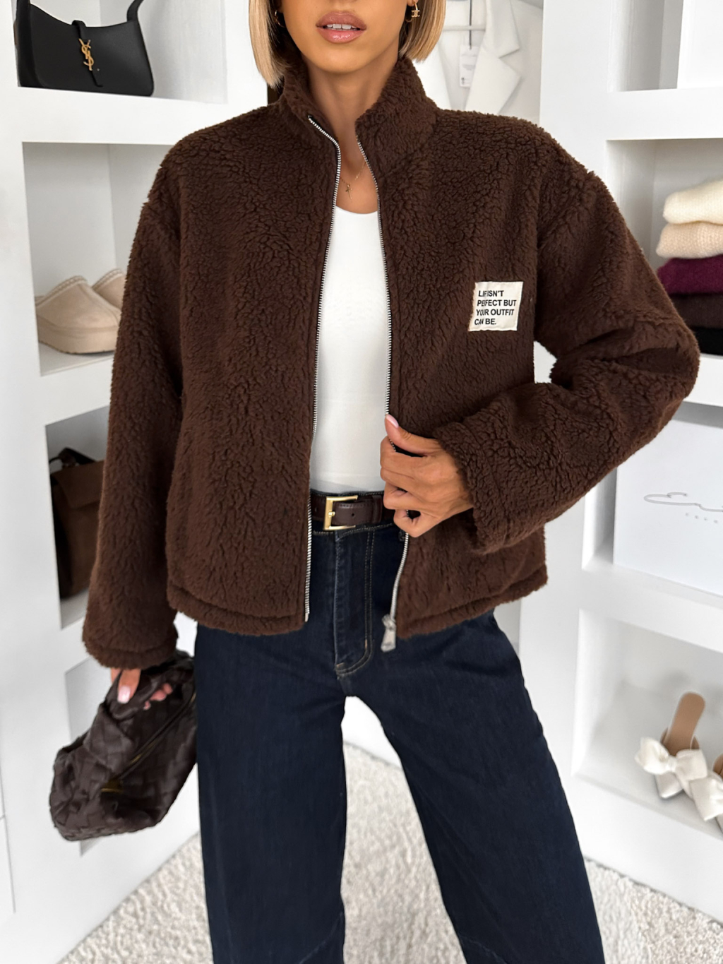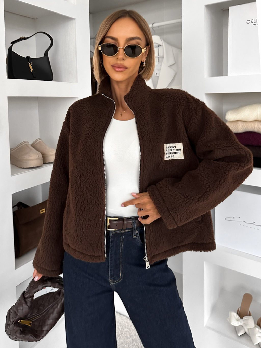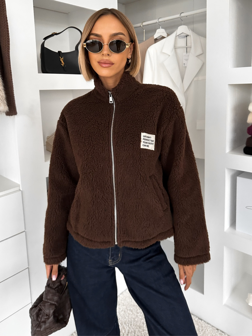 Tmavo hnedá plyšová mikina EVIONNE