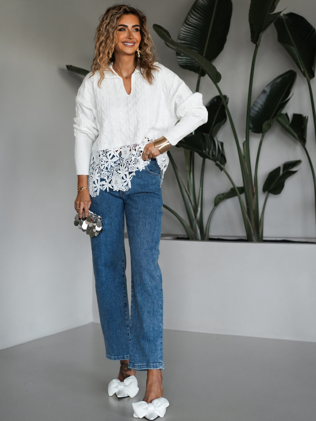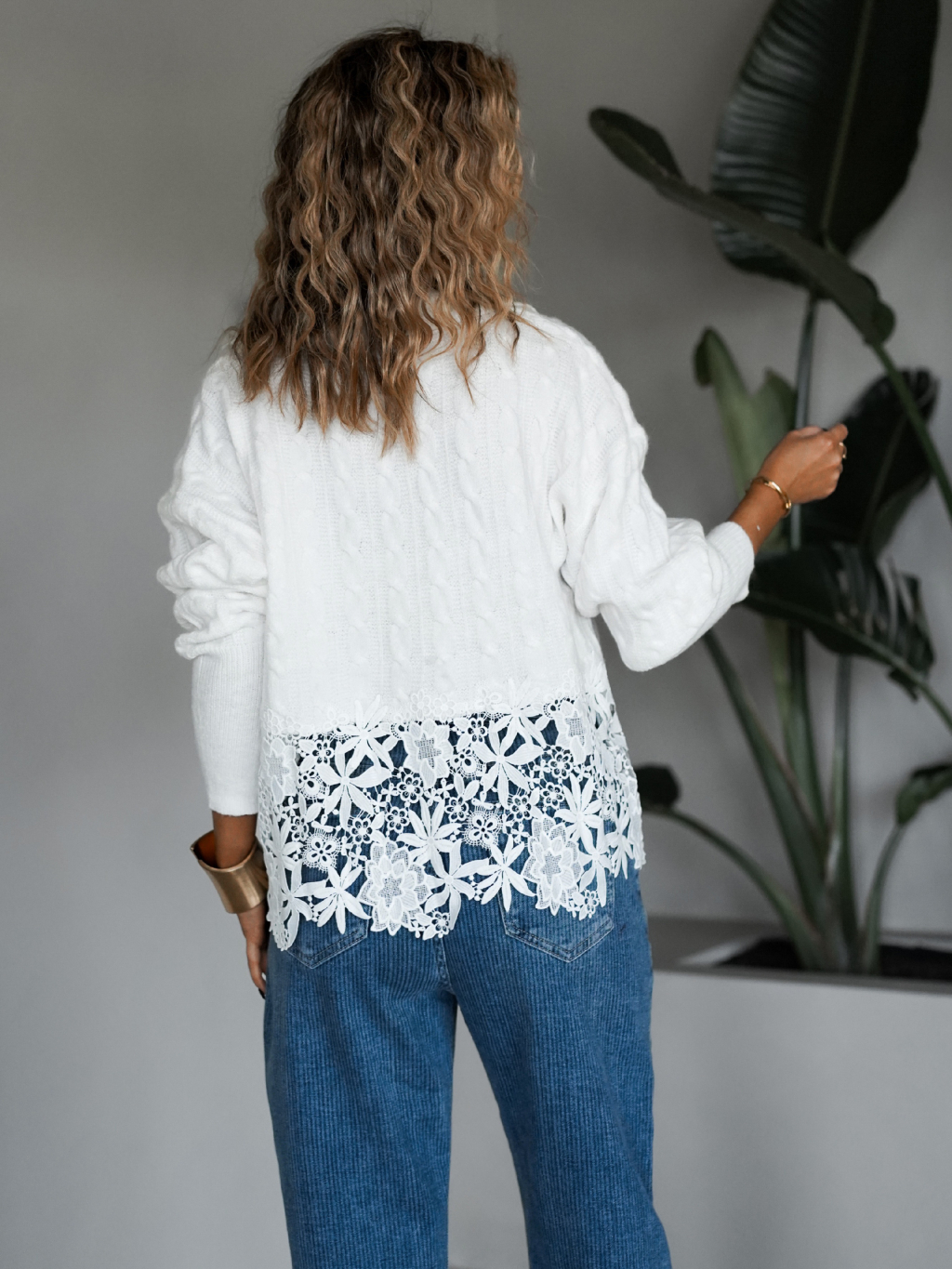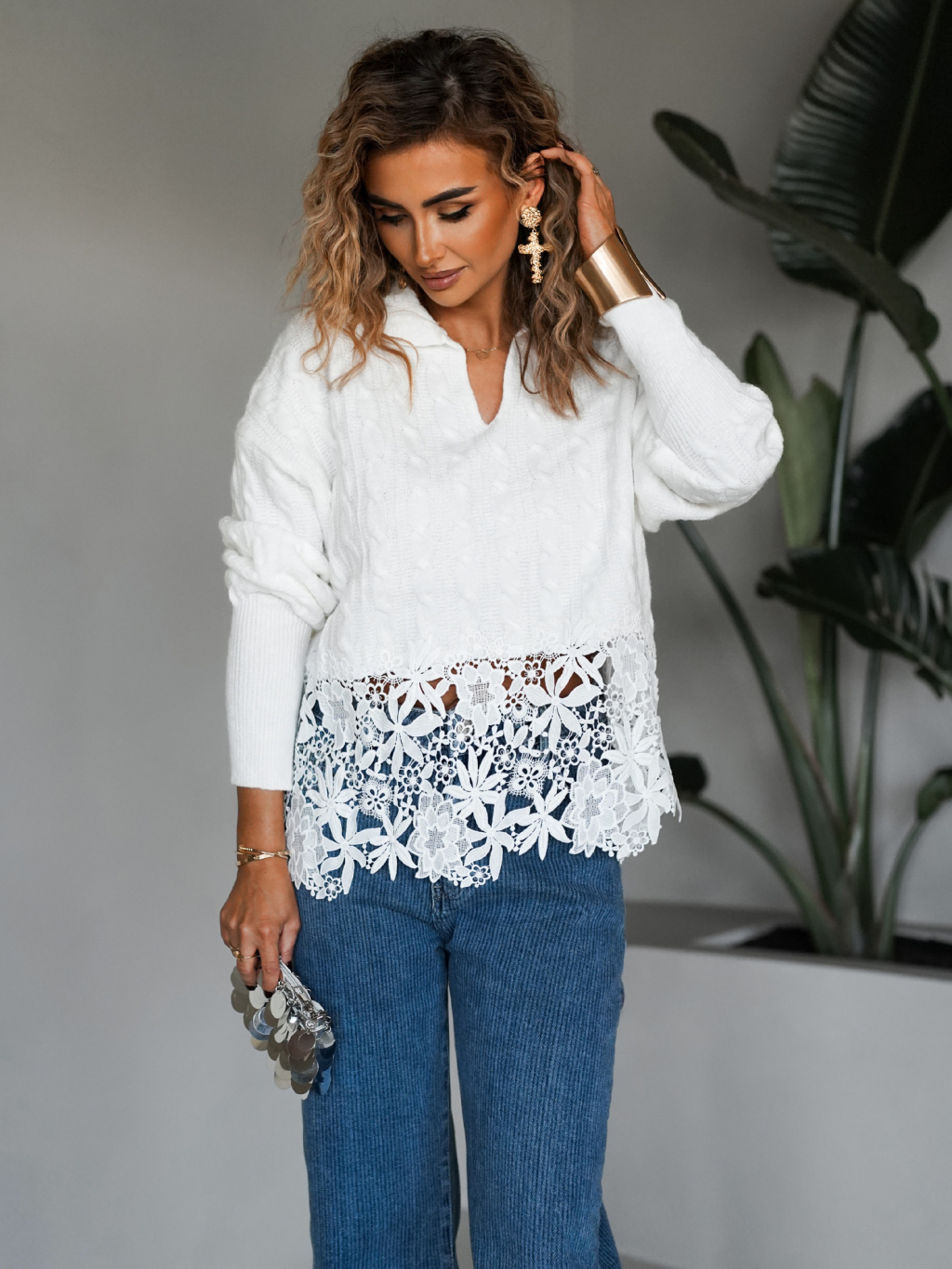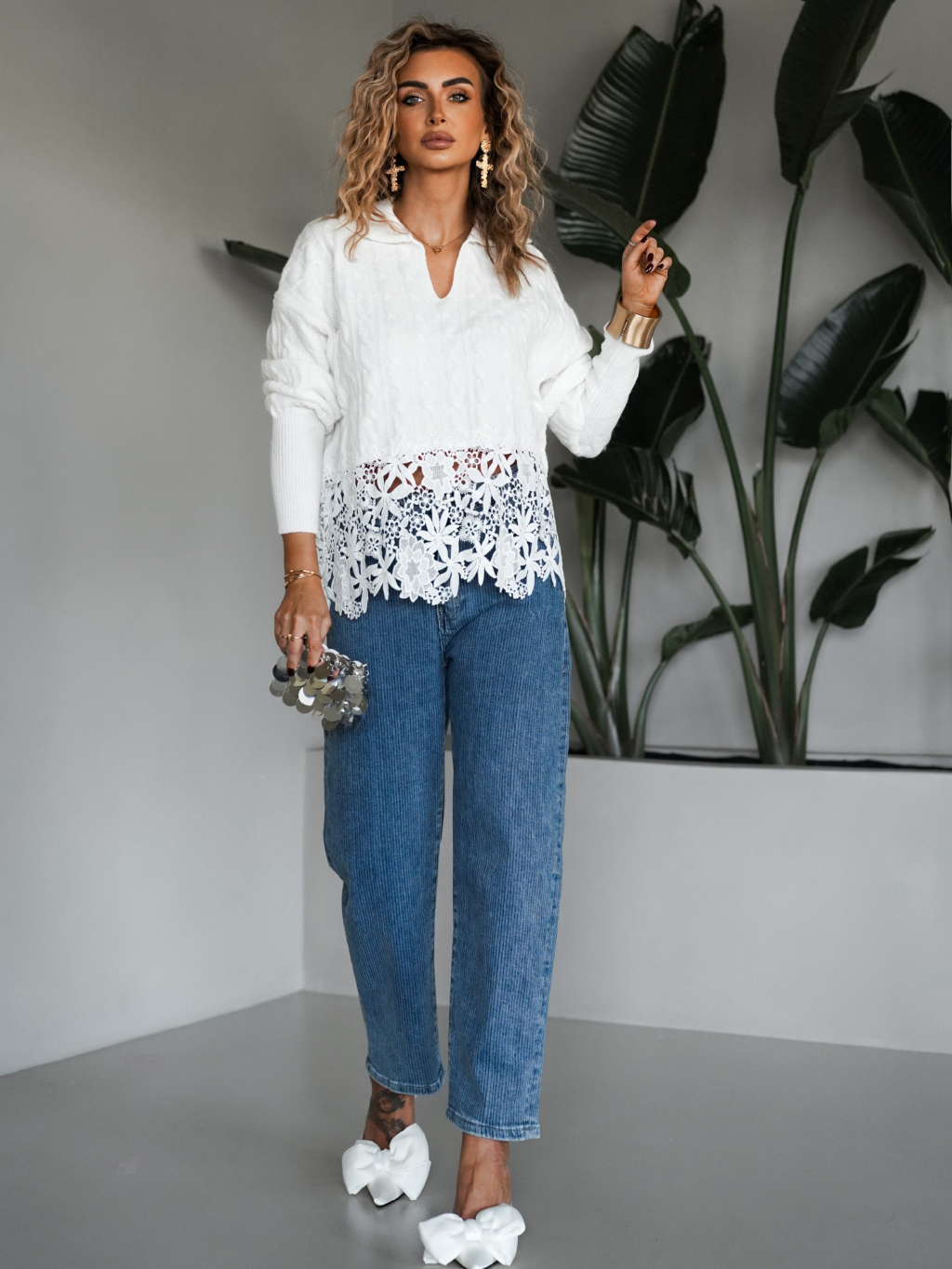 Biely sveter TICHOS s čipkou