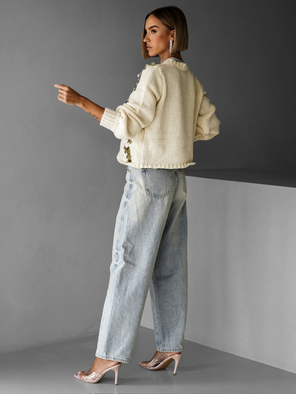 Krémový trblietavý sveter RAKAS s flitrami