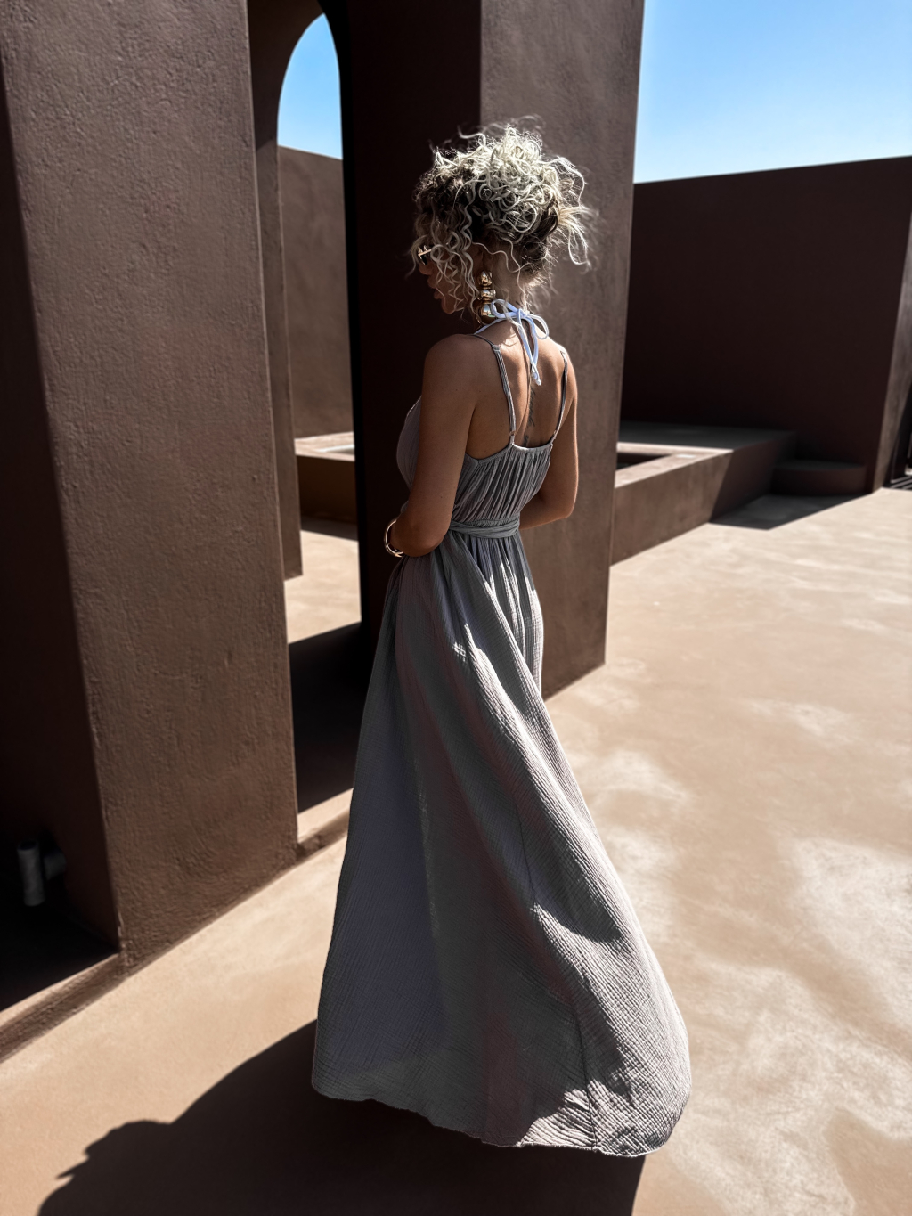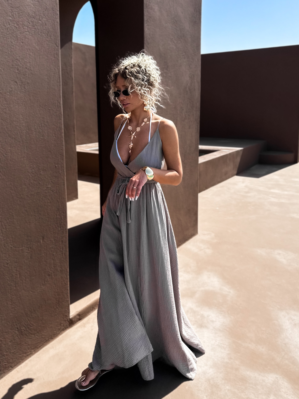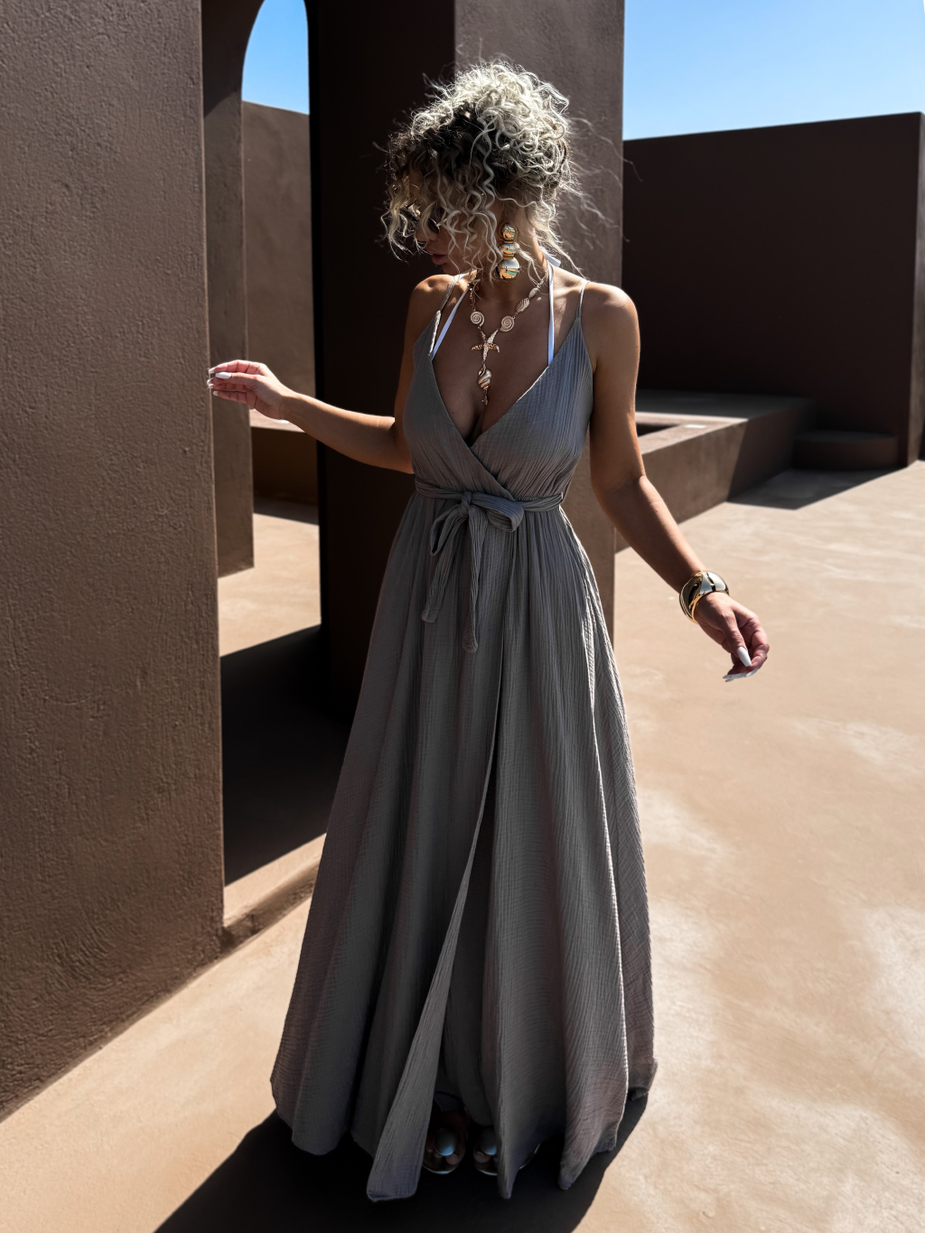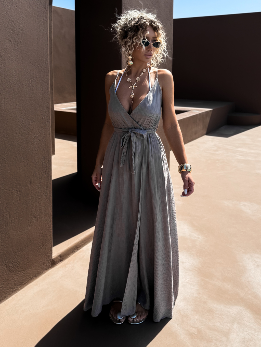 Šedohnedé dlhé letné mušelínové šaty SILVERA