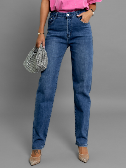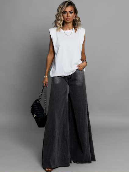 Modré široké wide leg džínsy EVALOTTA s prehybom