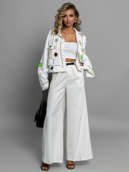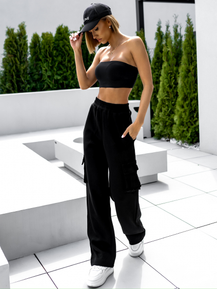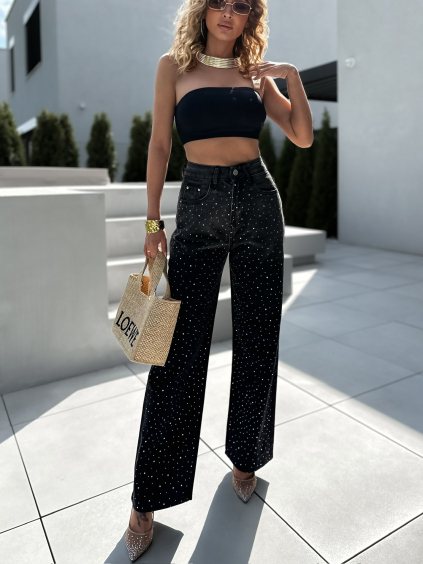 Čierne luxusné trblietavé nohavice KONRAT s kamienkami