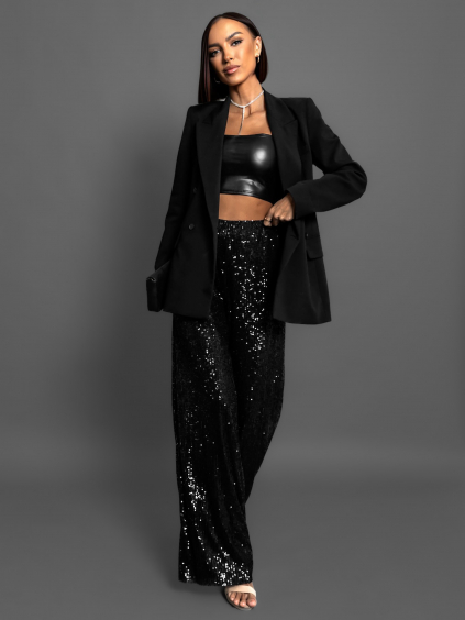 Čierne trblietavé široké flitrované nohavice ATHINA