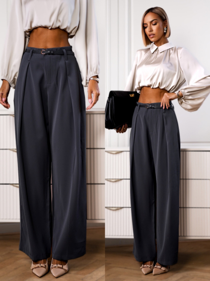 Tmavomodré široké voľné dlhé nohavice OLVIRA