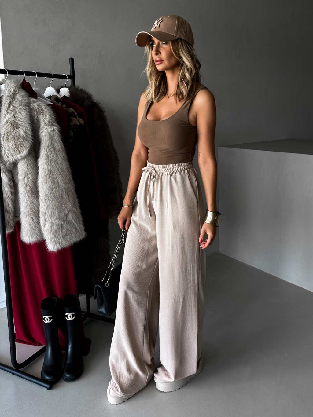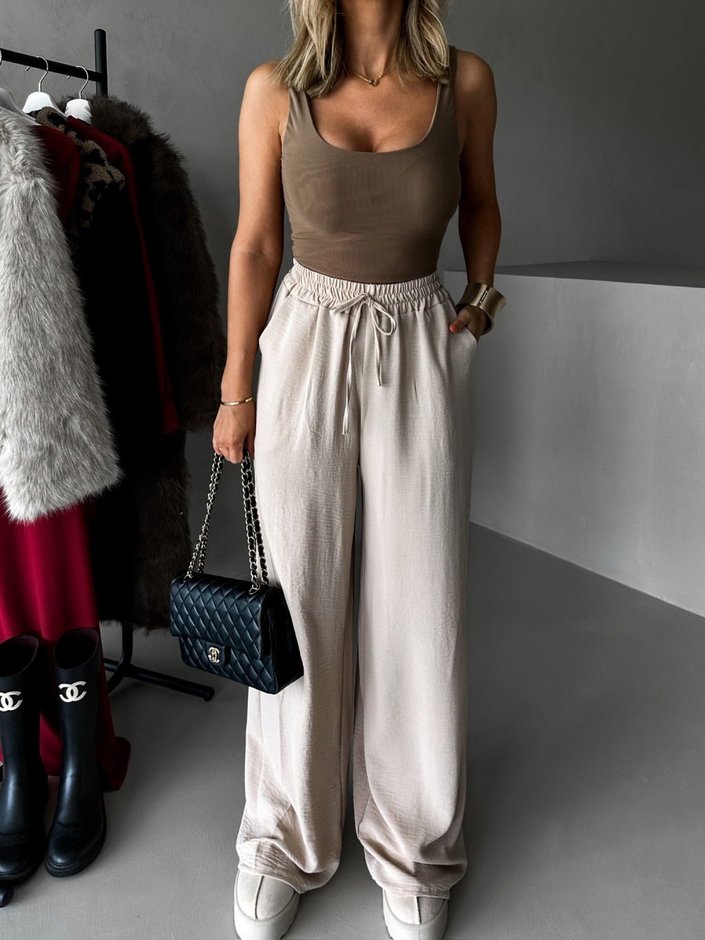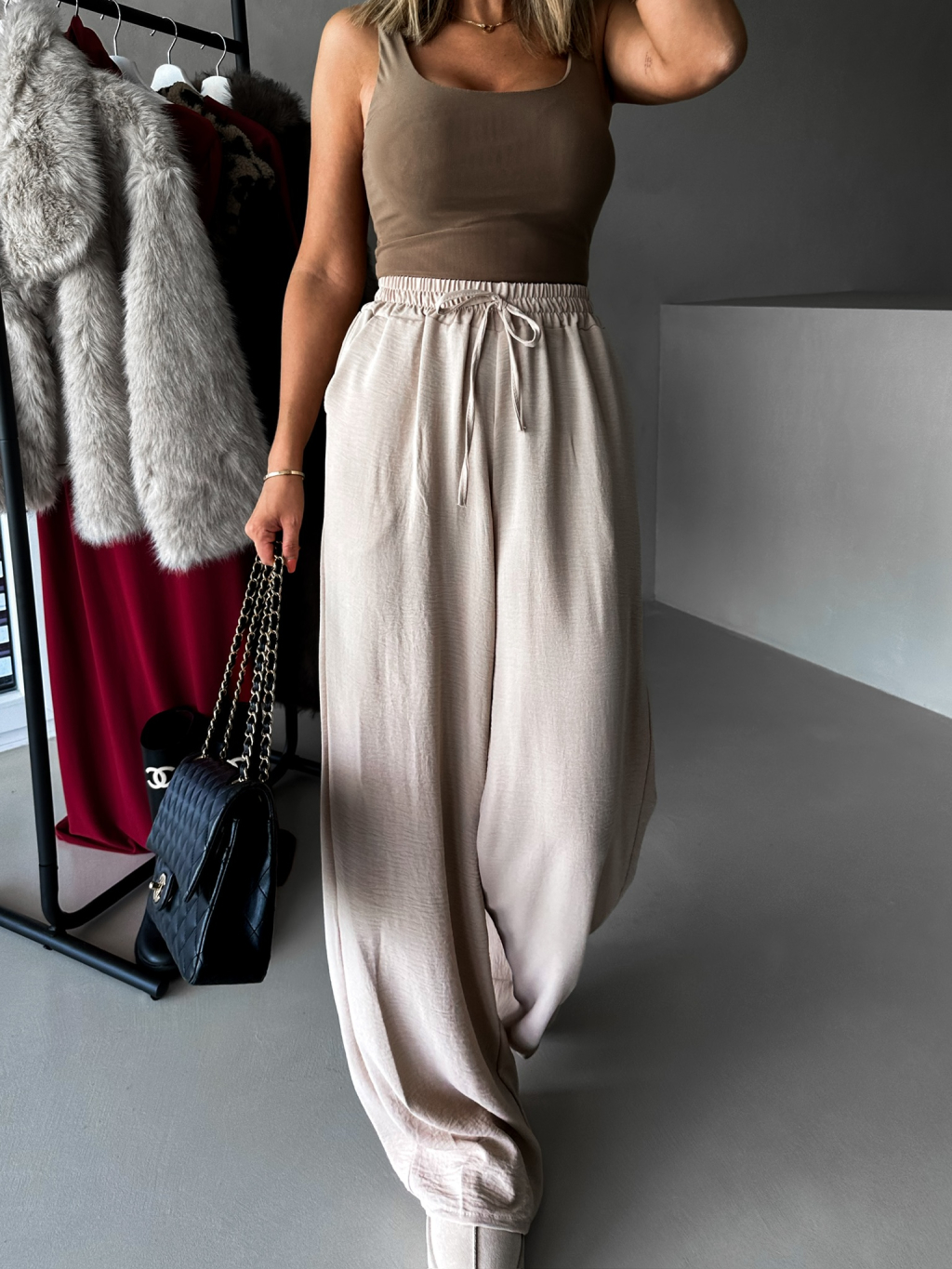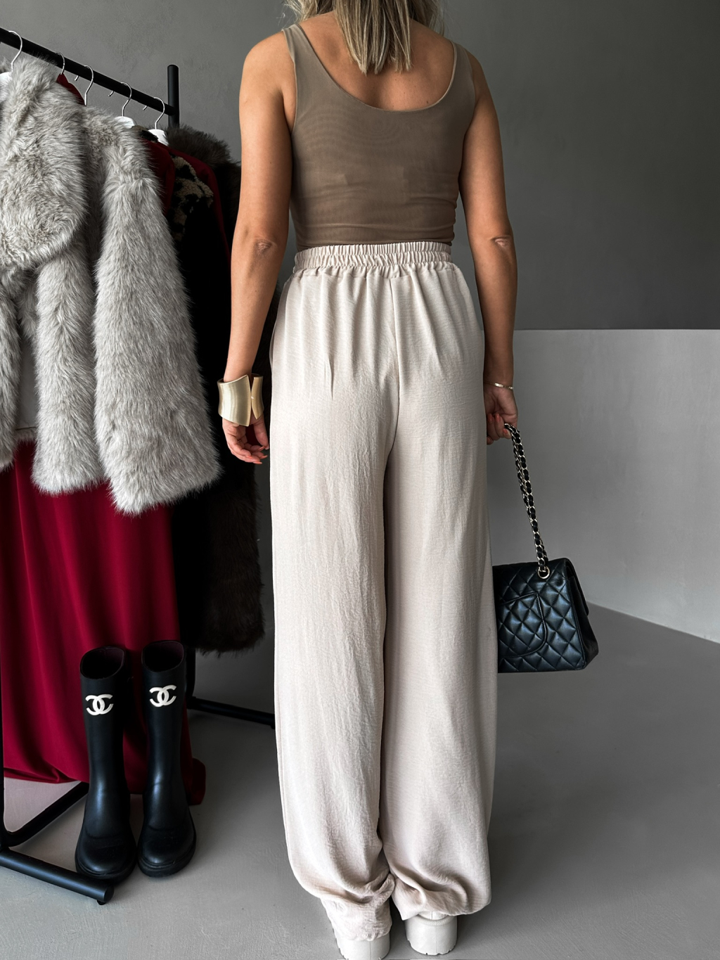 Béžové elegantné nohavice CORAL s rozšírenými nohavicami