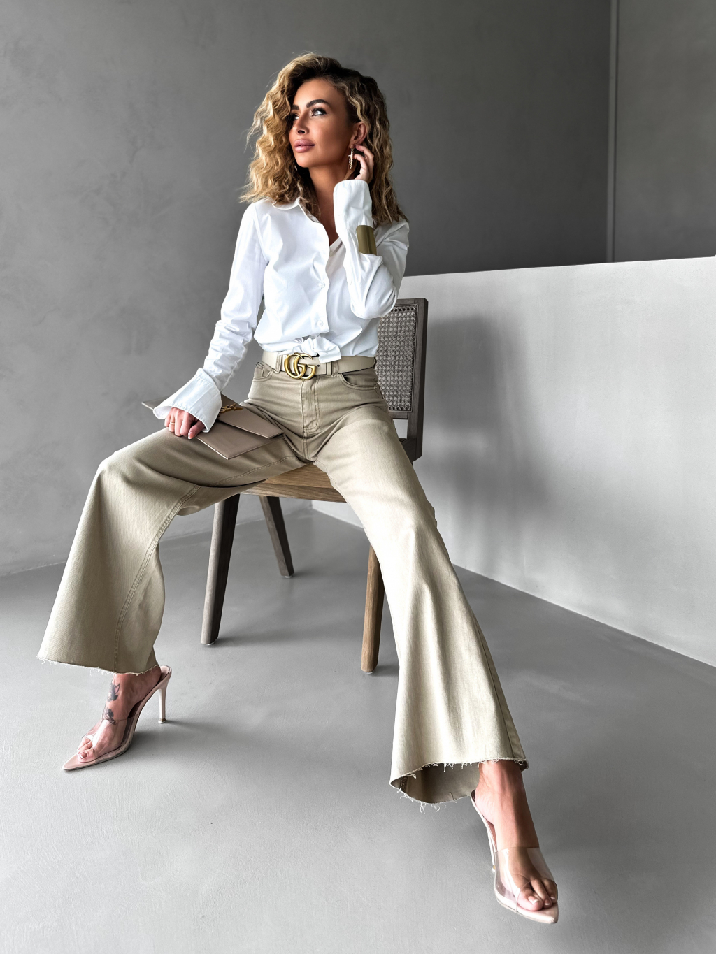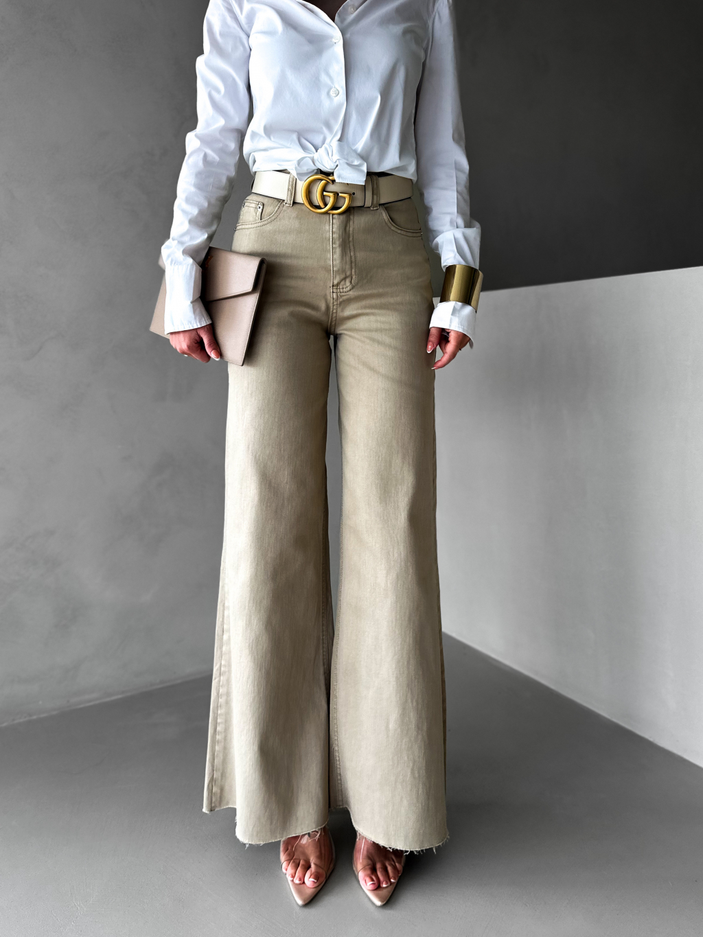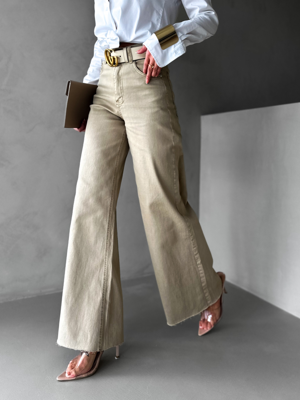 Béžové wide leg široké džínsy TOKAT s vysokým pásom
