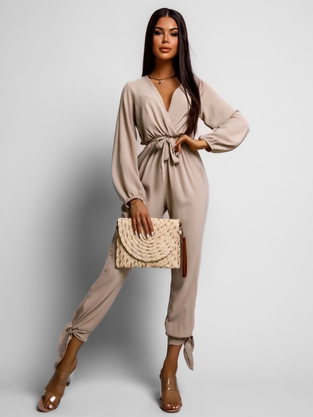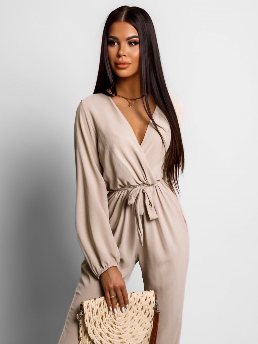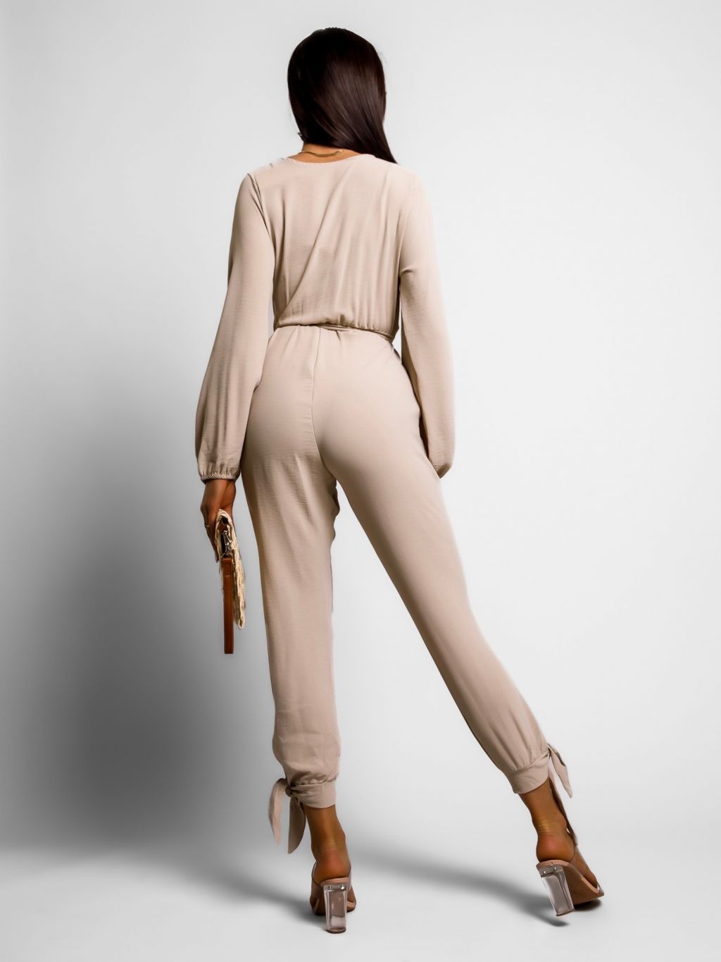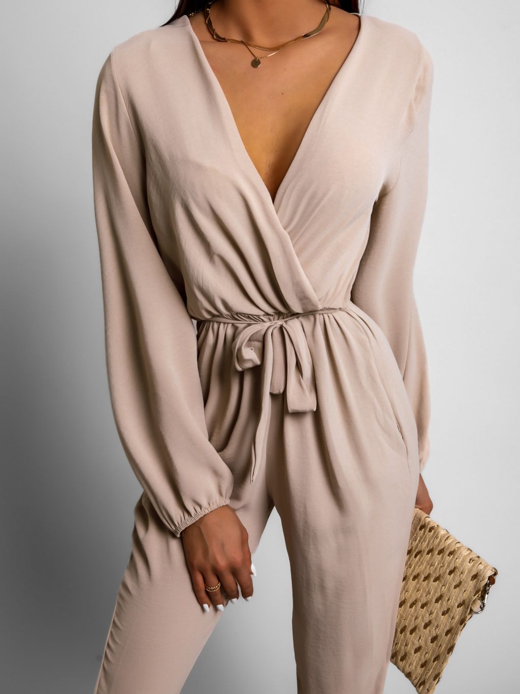 Béžový elegantný overal TIAMO s dlhým rukávom