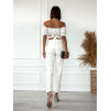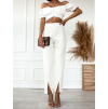Biele elegantné nohavice TOLEDO s rozparkom