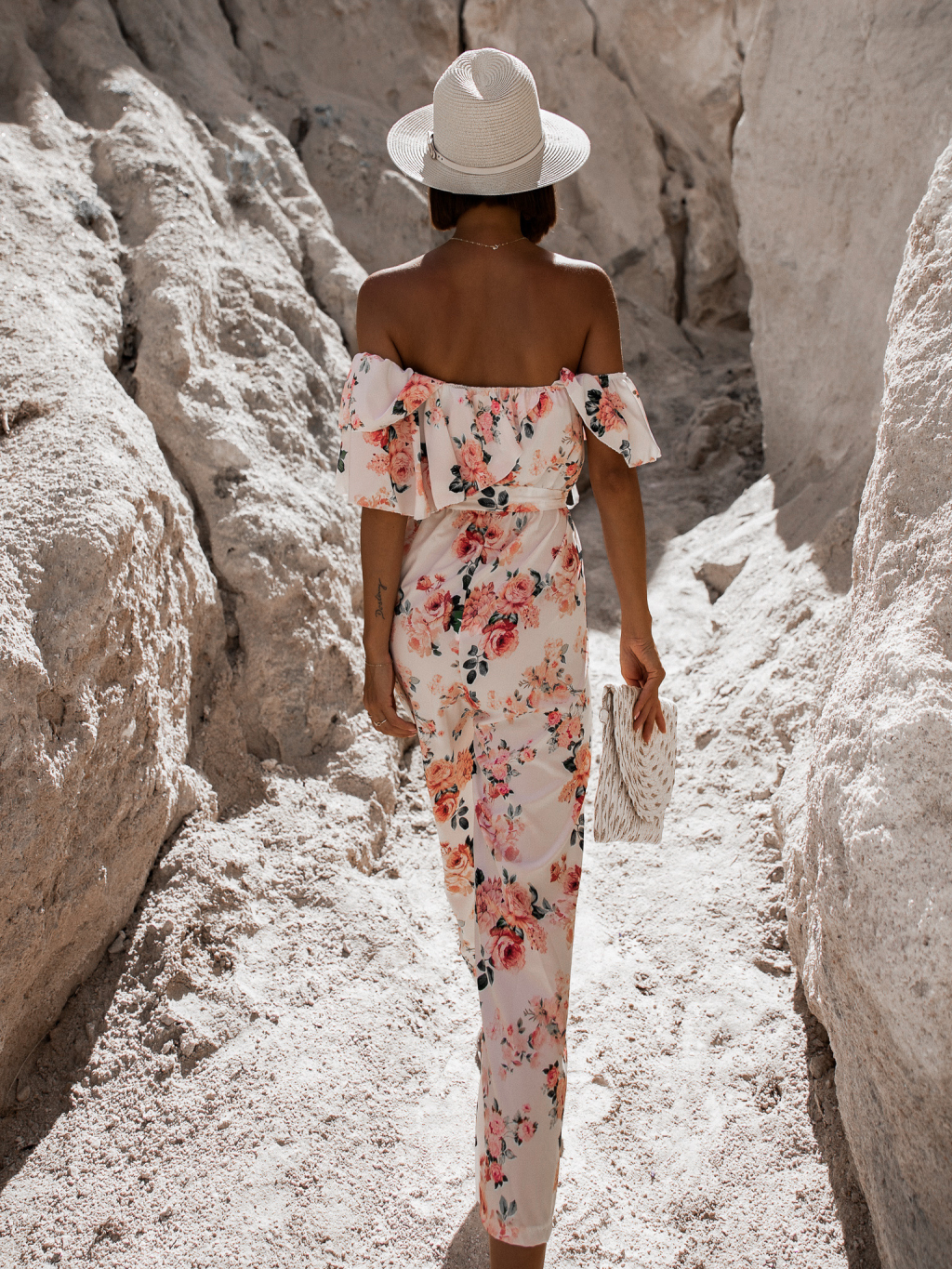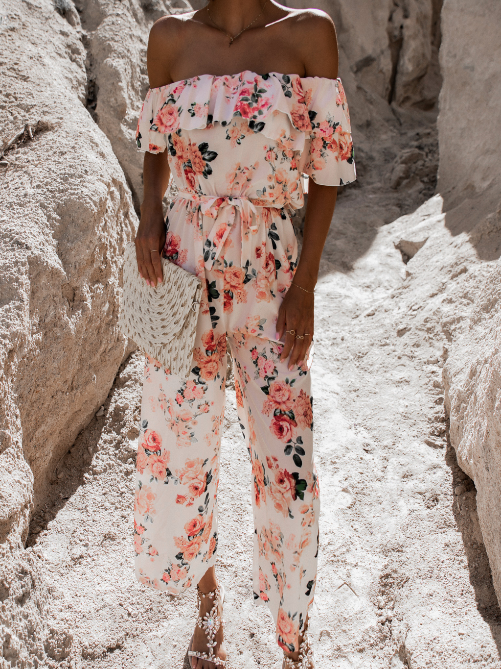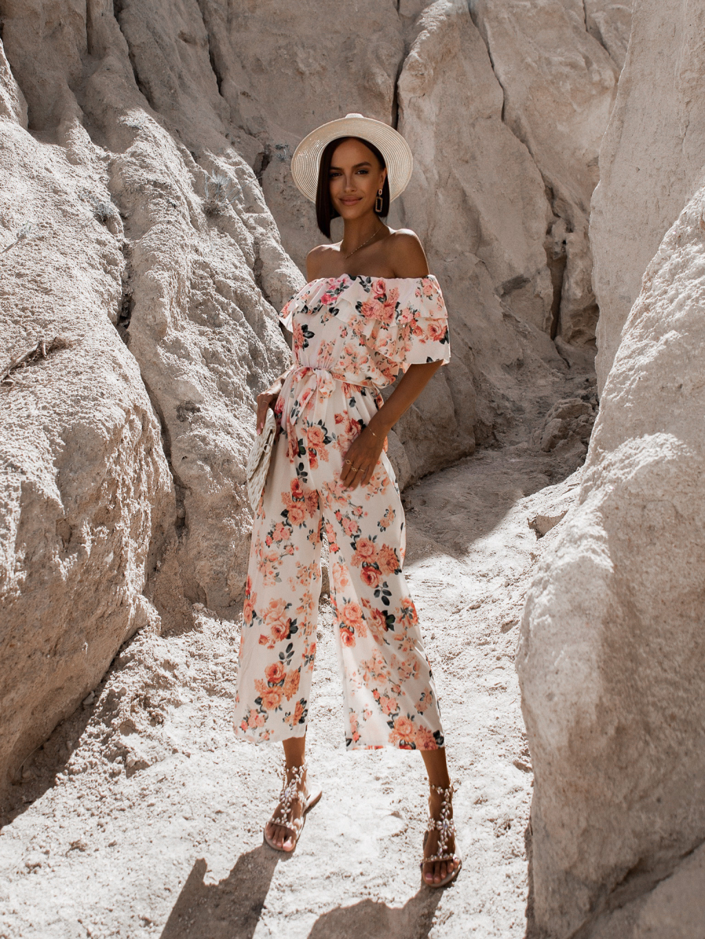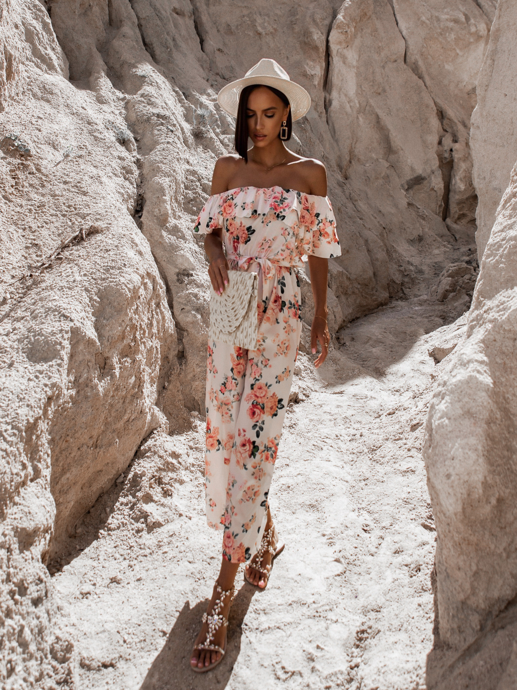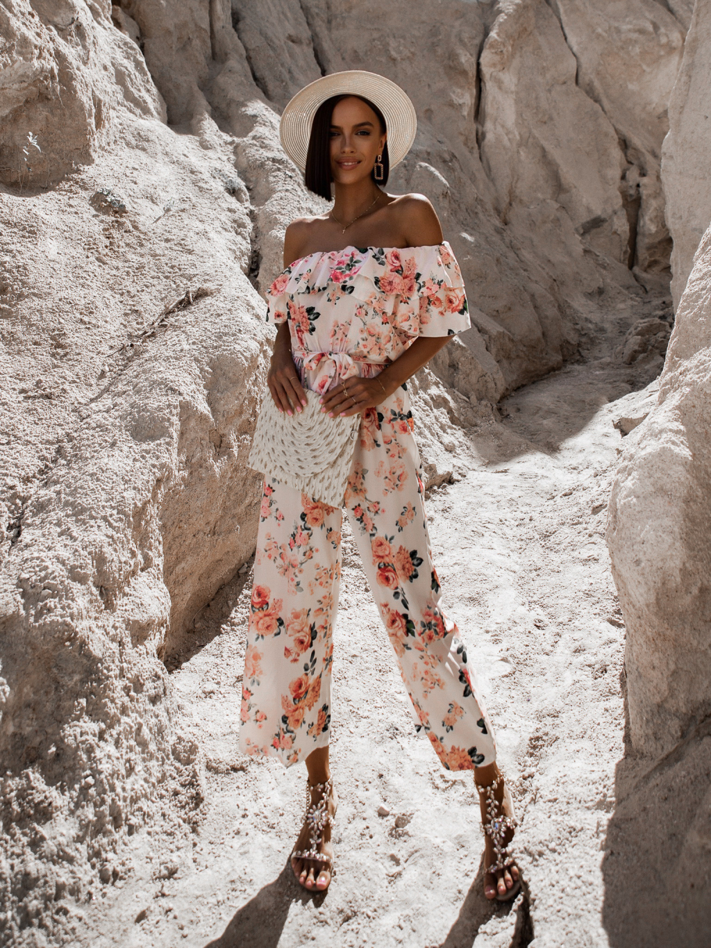 Bielolososový elegantný overal ROSALYN s kvetinovým vzorom