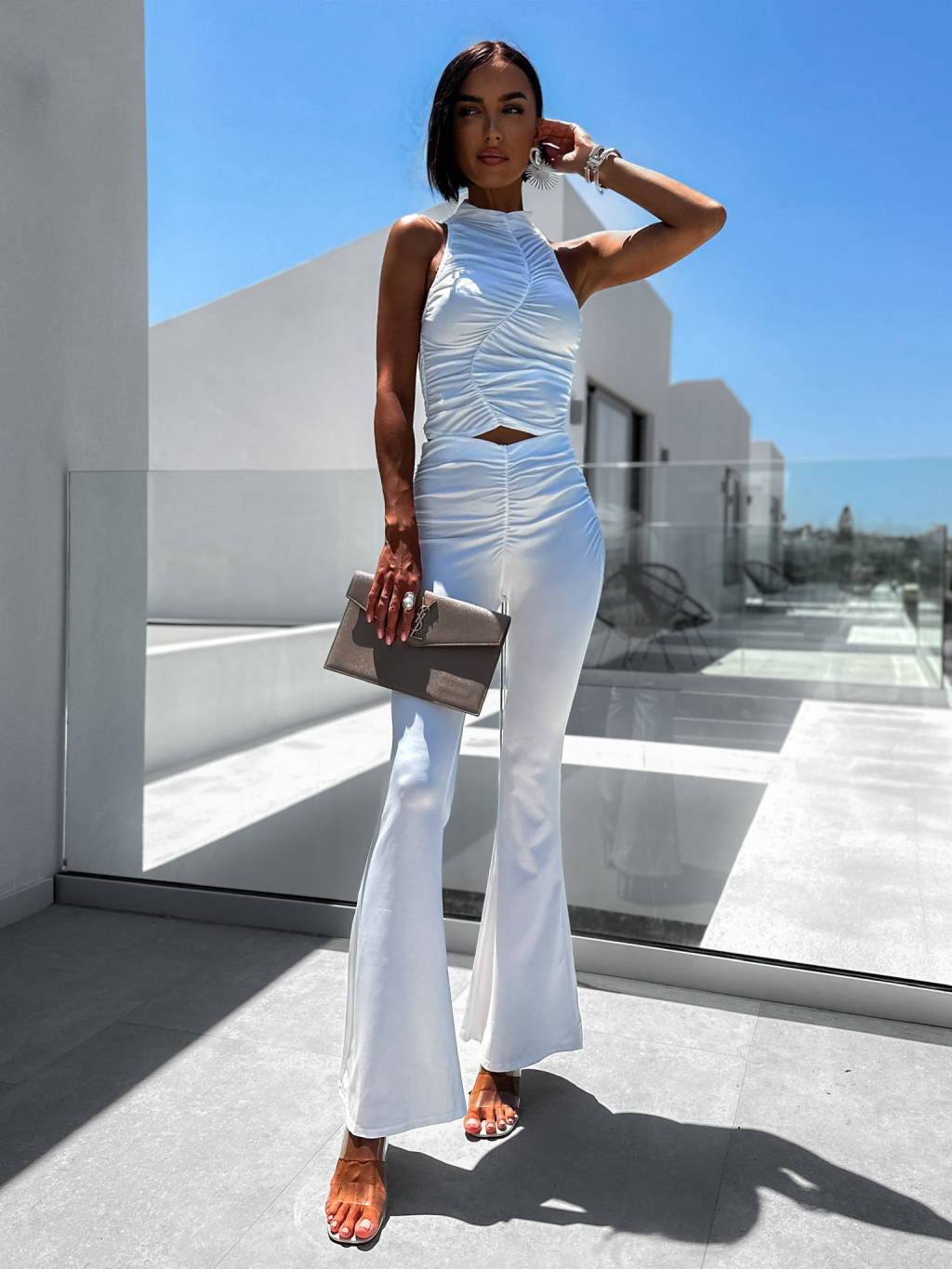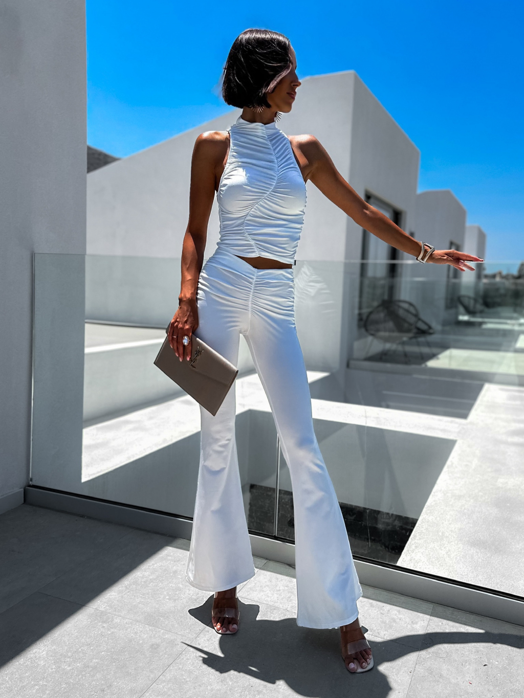 Biely elegantný dvojdielny komplet COLENS s vrásnením
