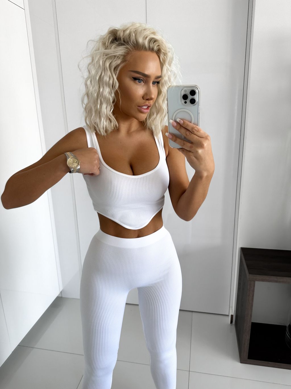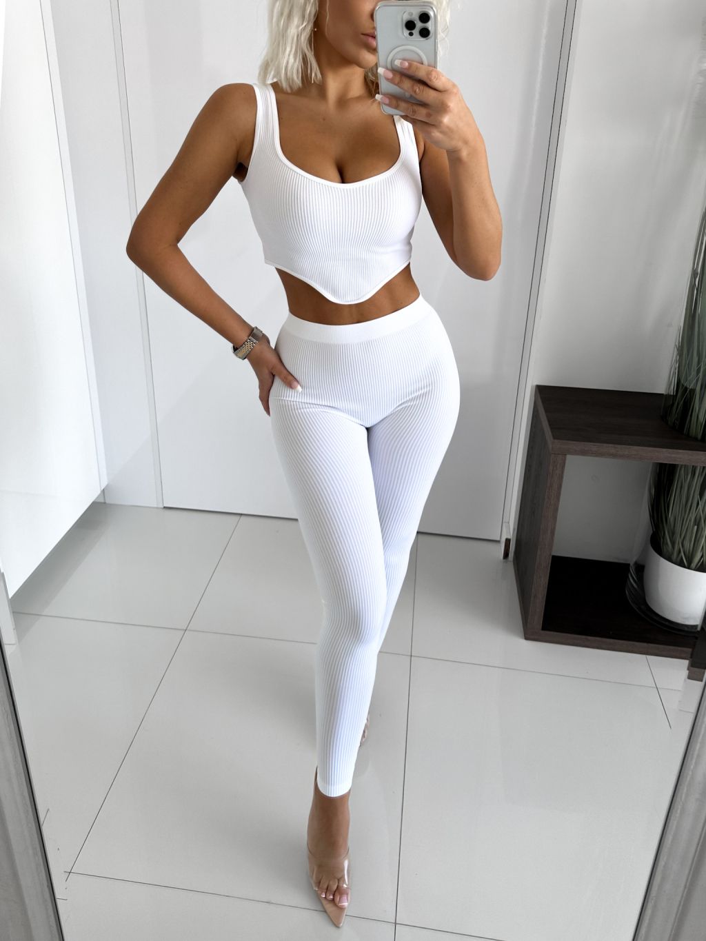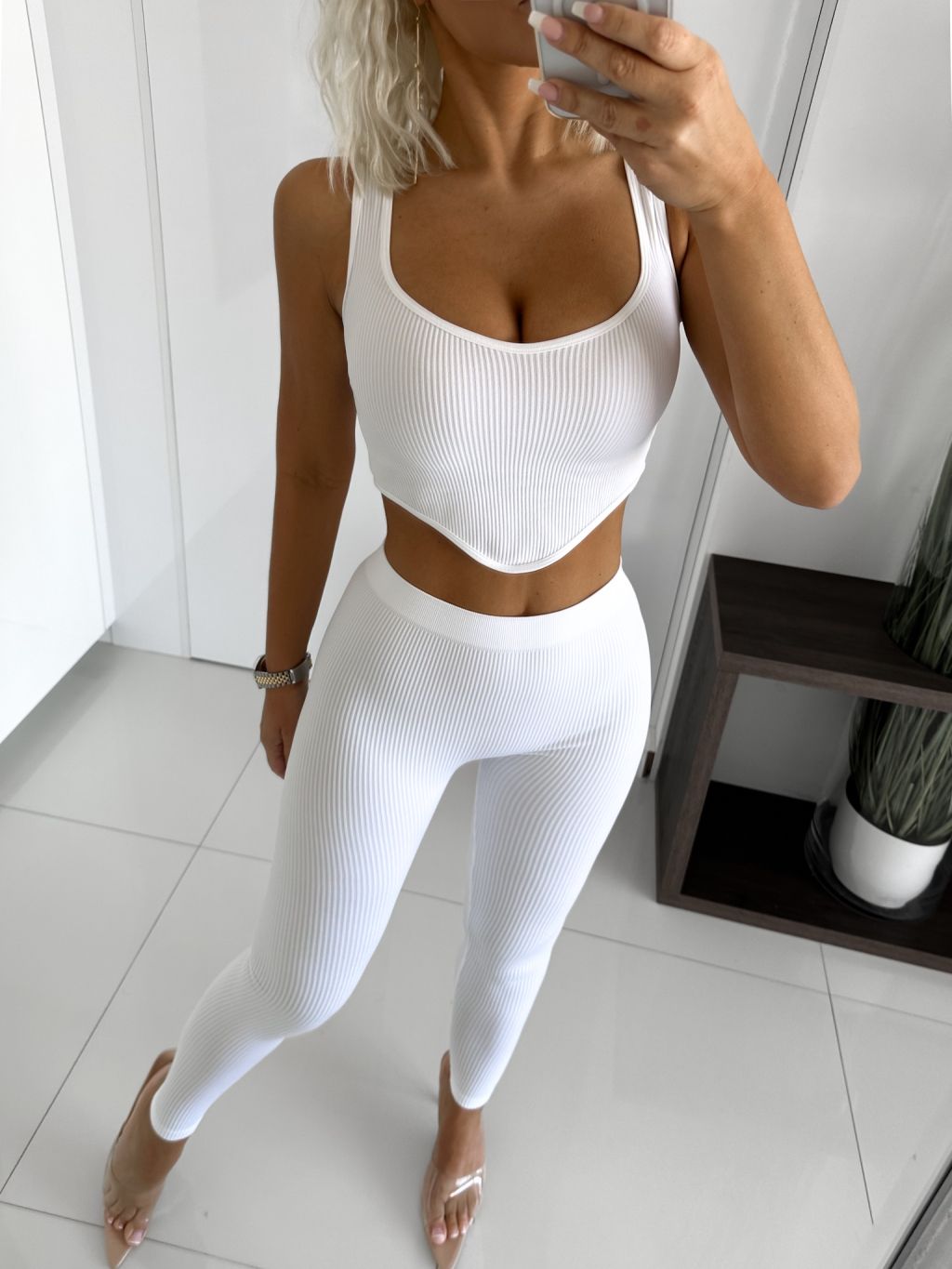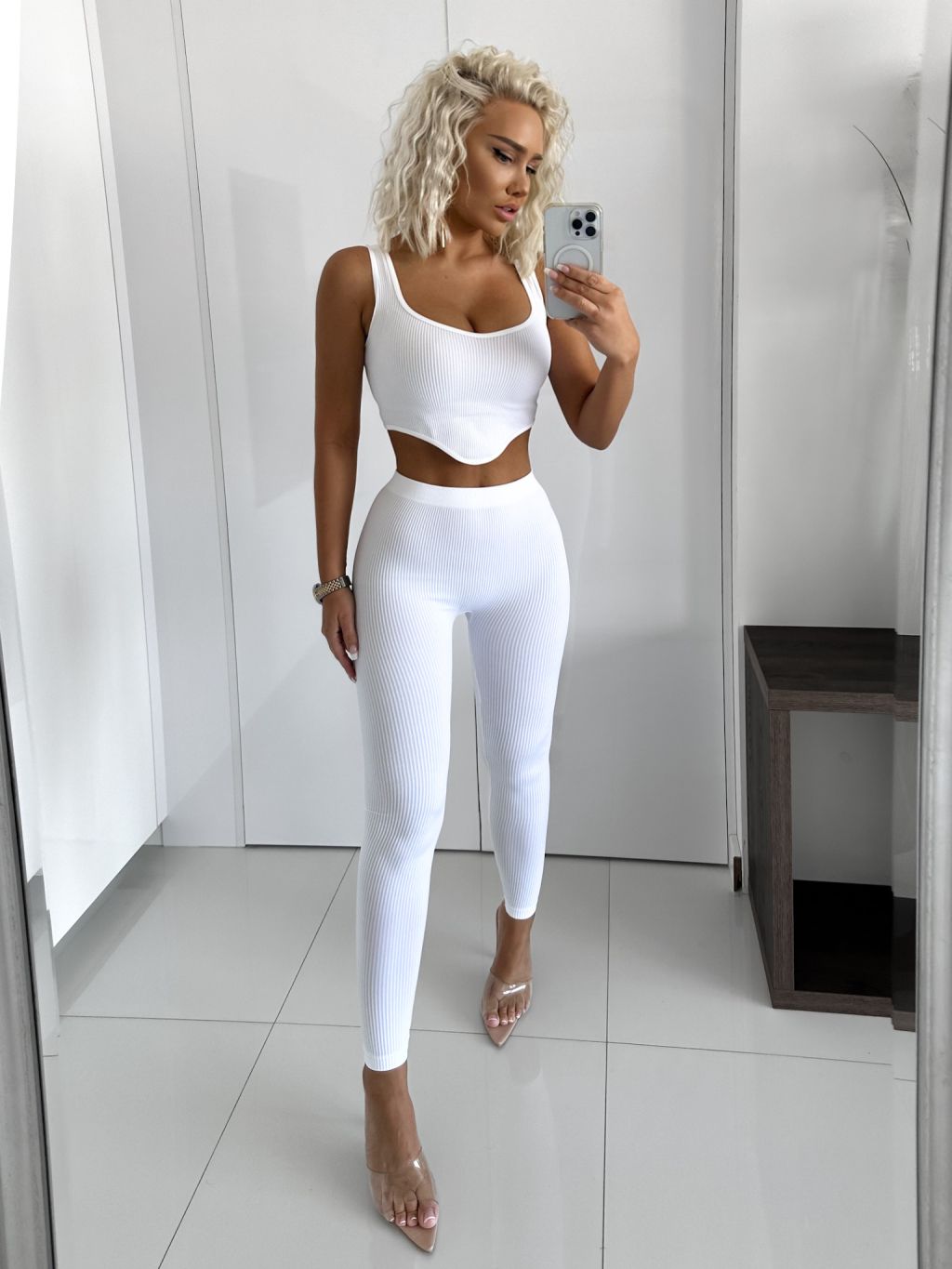 Biely rebrovaný dvojdielny komplet NATALISE