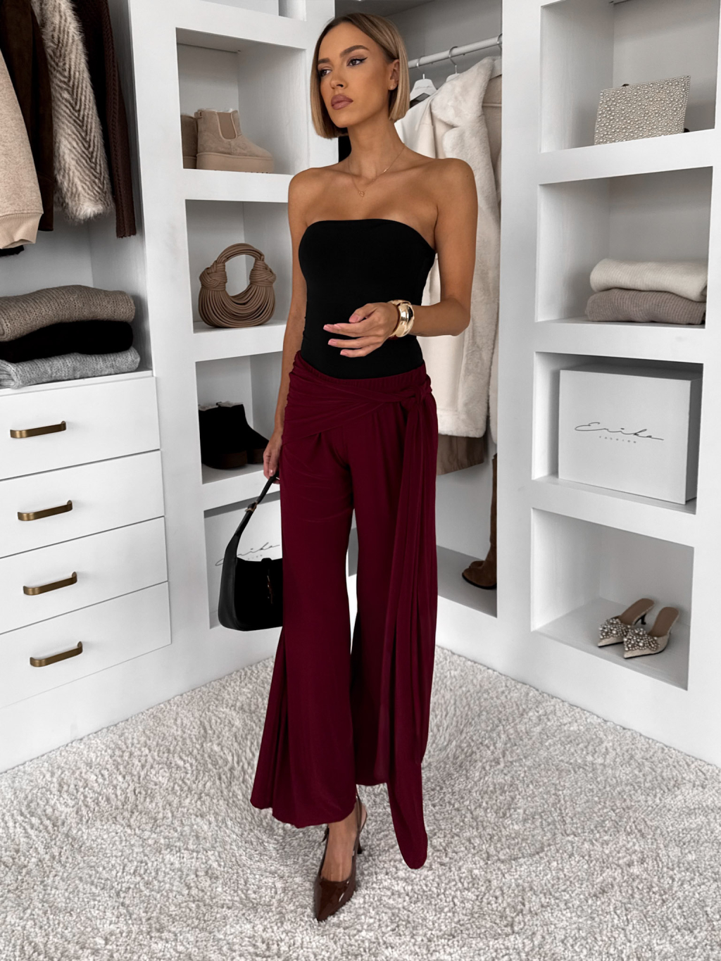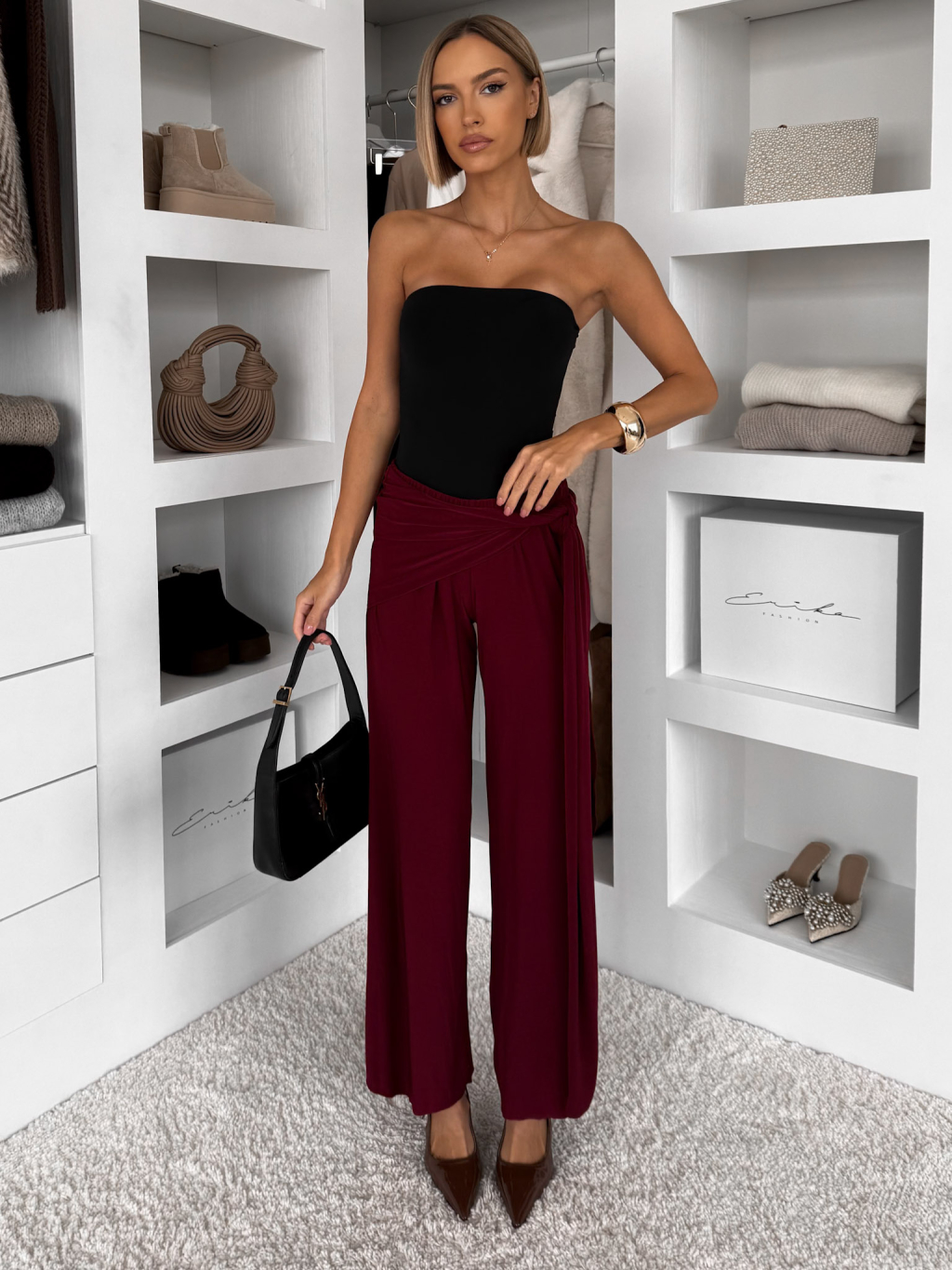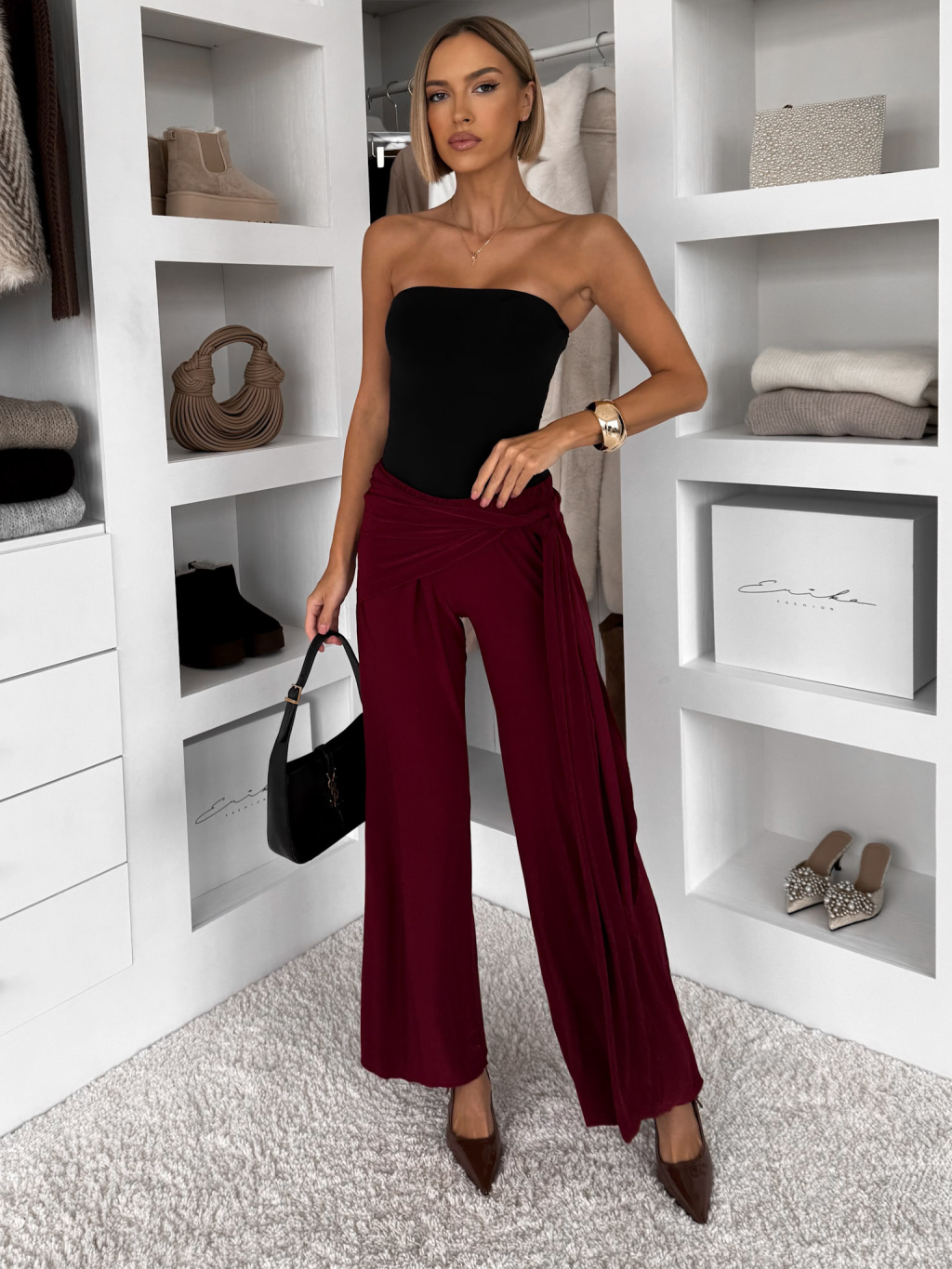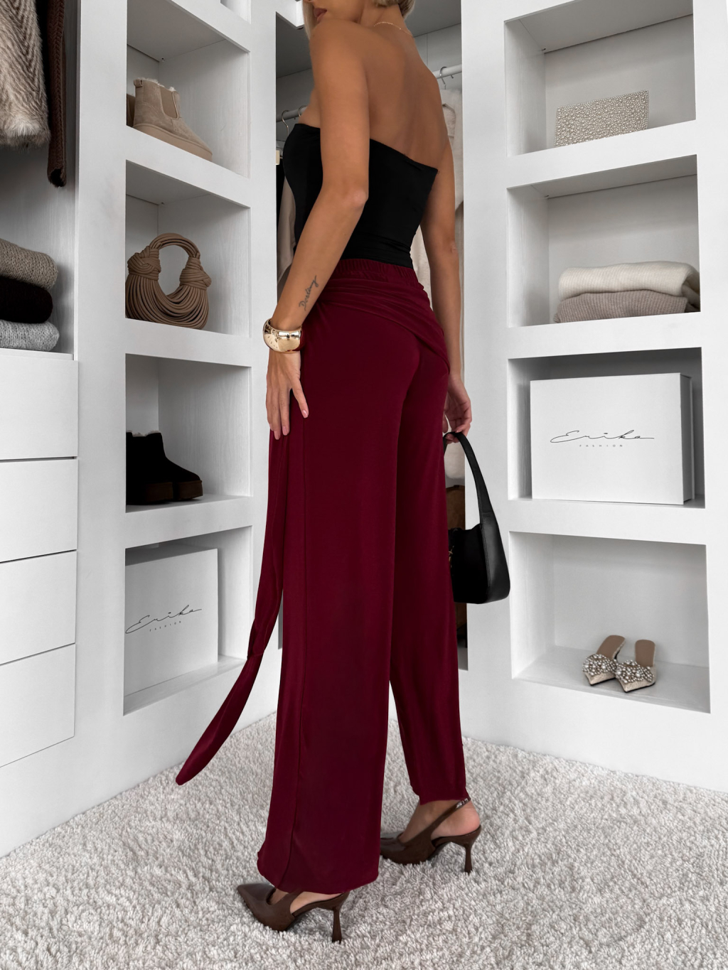 Bordové voľné elegantné nohavice IRAVELL