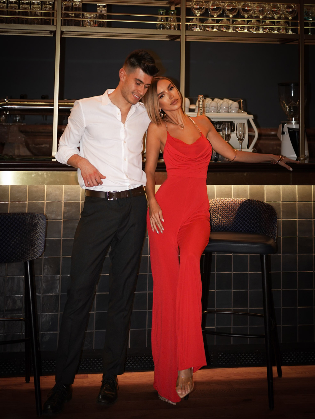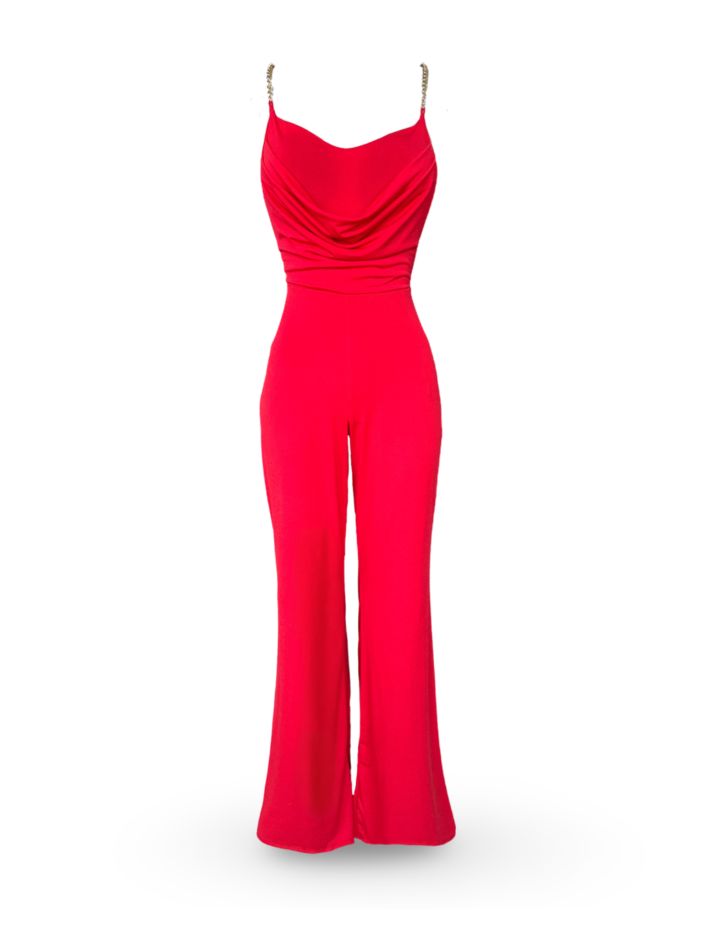 Červený overal BAKCHOS s retiazkovými ramienkami
