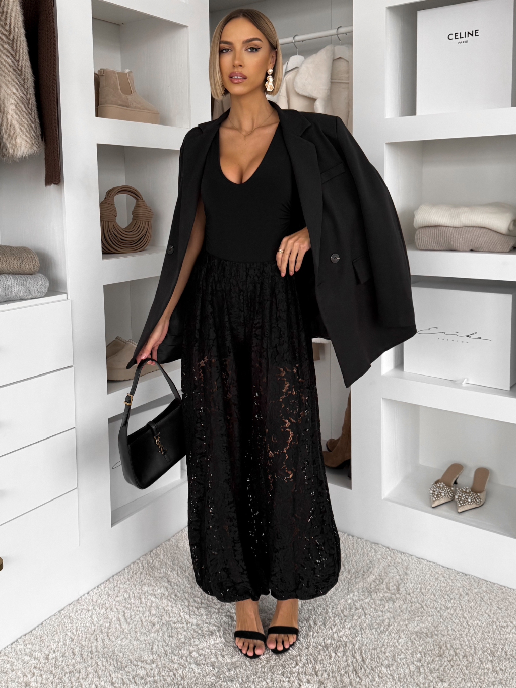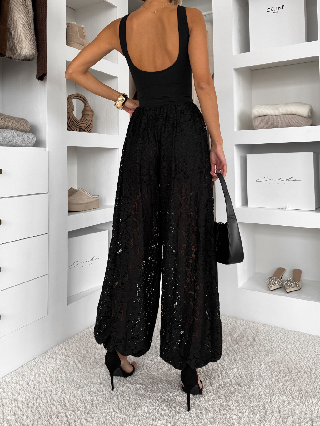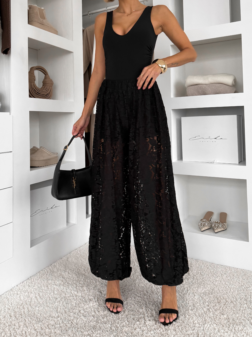 Čierne čipkované široké nohavice LIVIANA