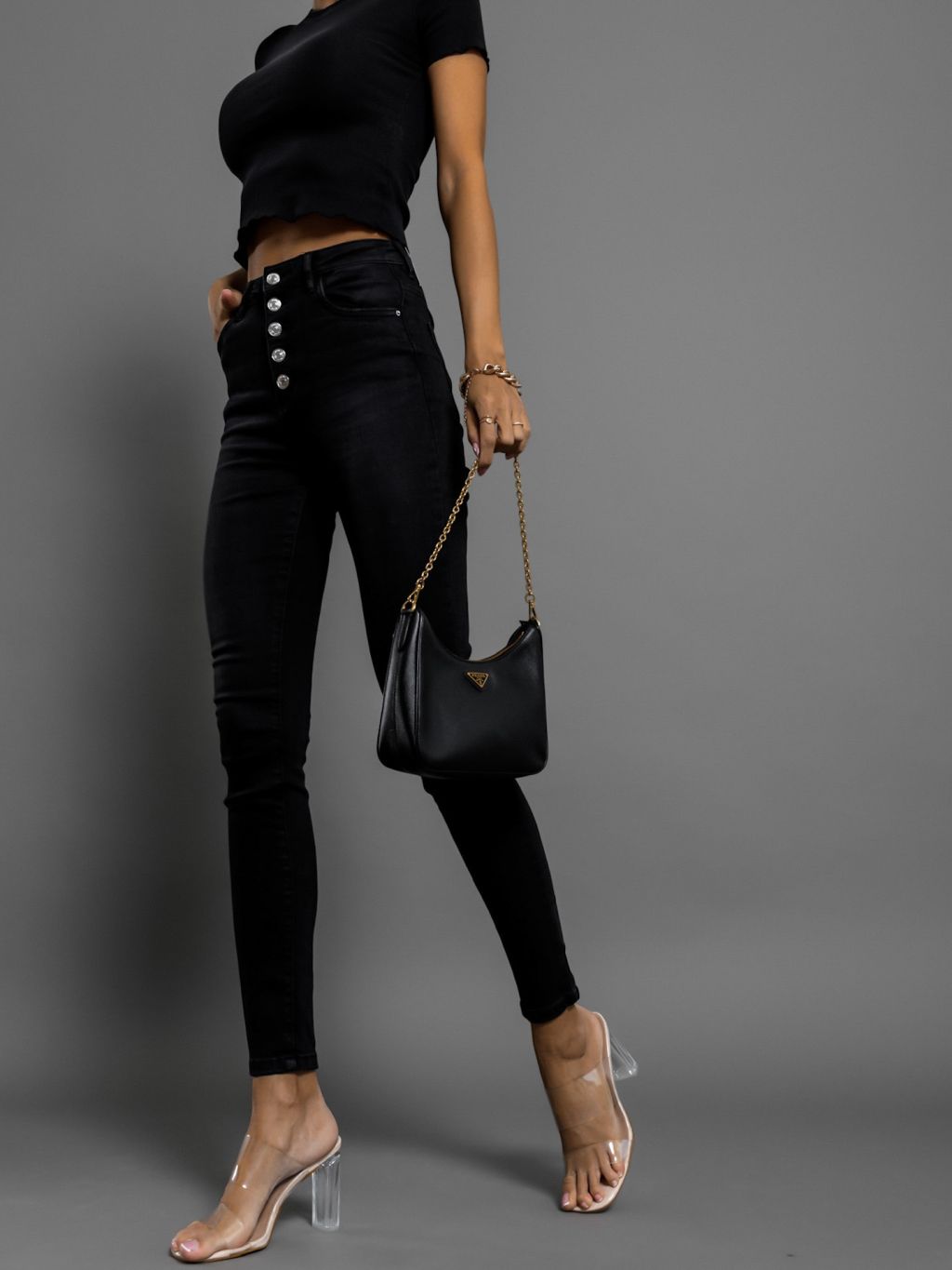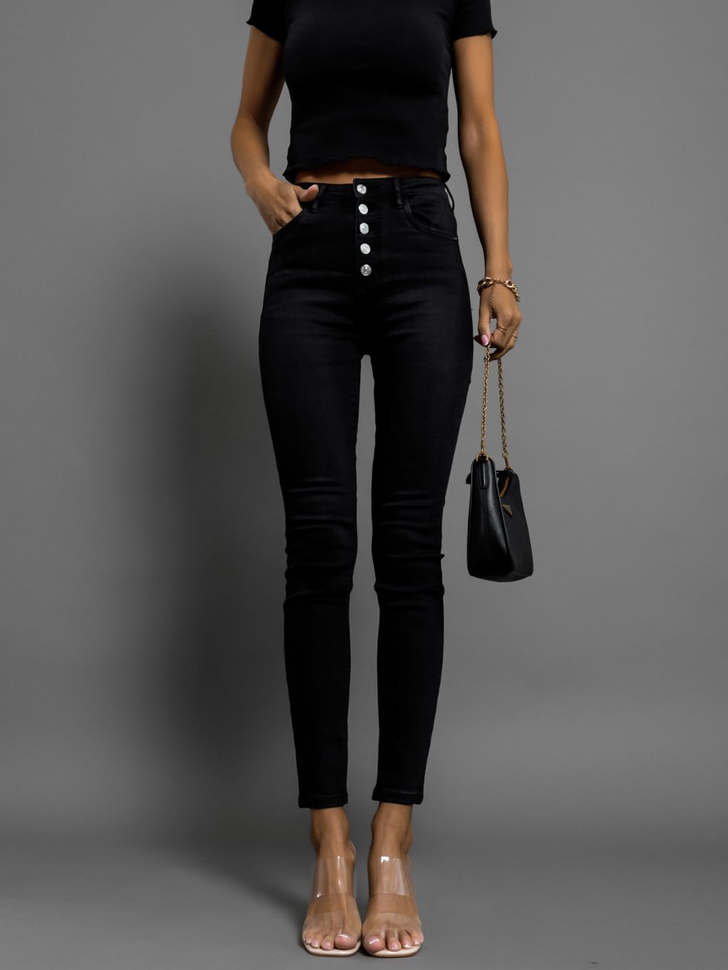 Čierne džínsy MINESTRY s vysokým pásom a gombíkmi