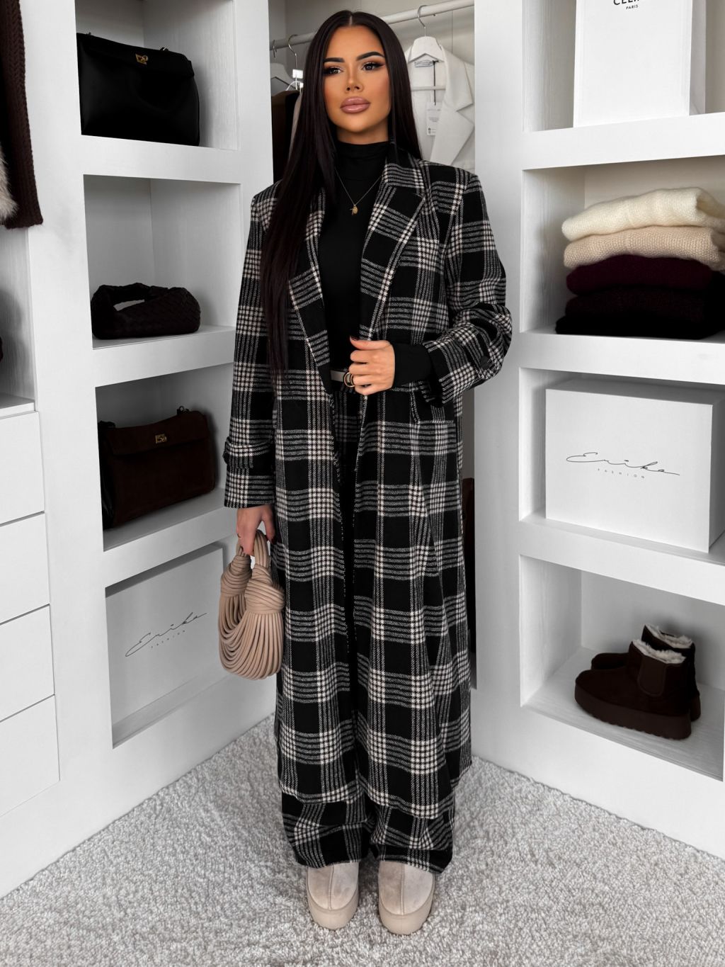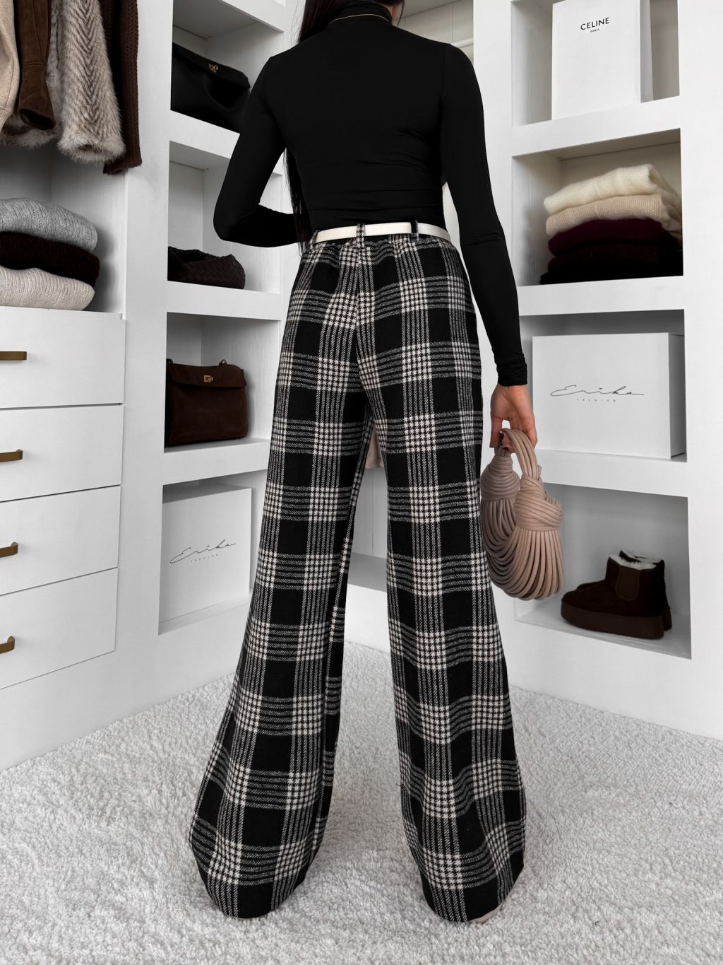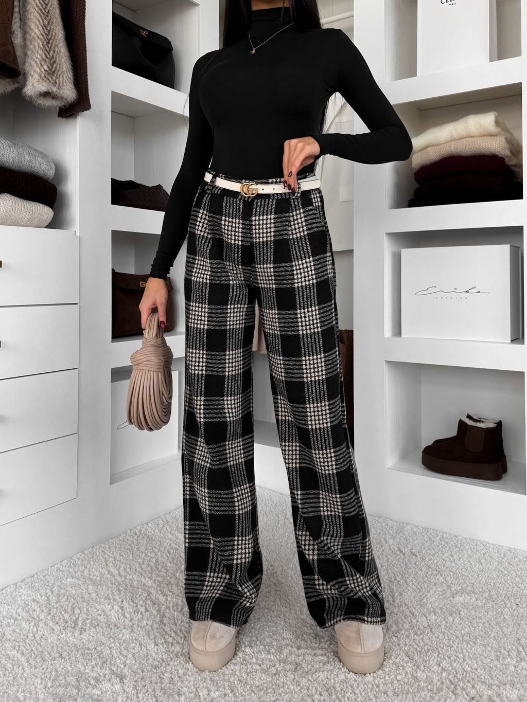 Čierne kockované kárované široké nohavice VIOTRA