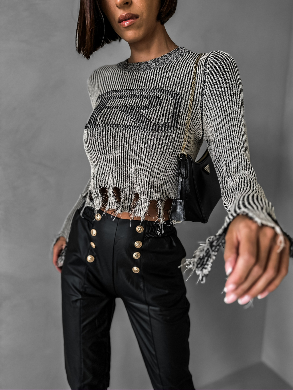 Čierne koženkové nohavice PONTOS s gombíkmi
