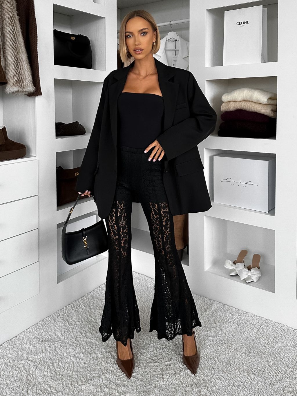 Čierne krajkové dlhé zvonové nohavice FYNORIA