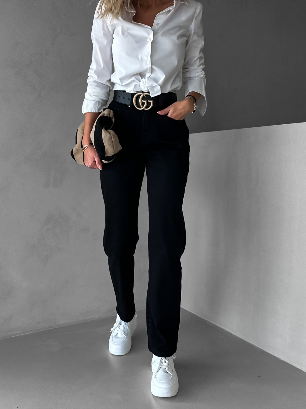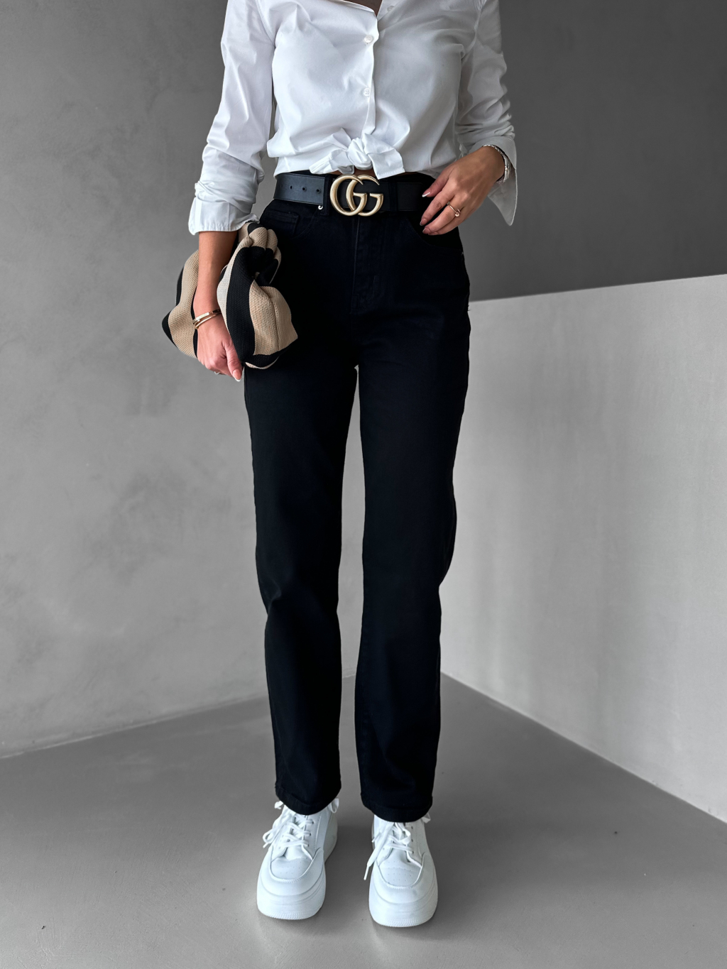 Čierne mom jeans džínsy DOGAN s vysokým pásom
