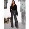 Čiernostrieborné flitrové široké nohavice HEKATE
